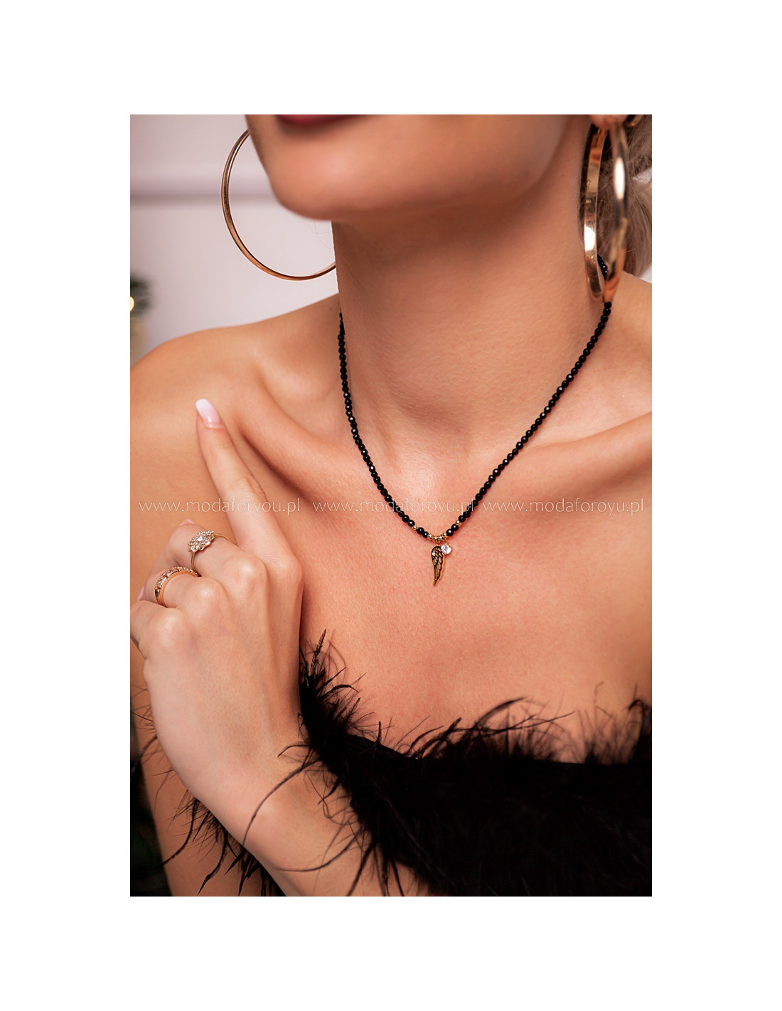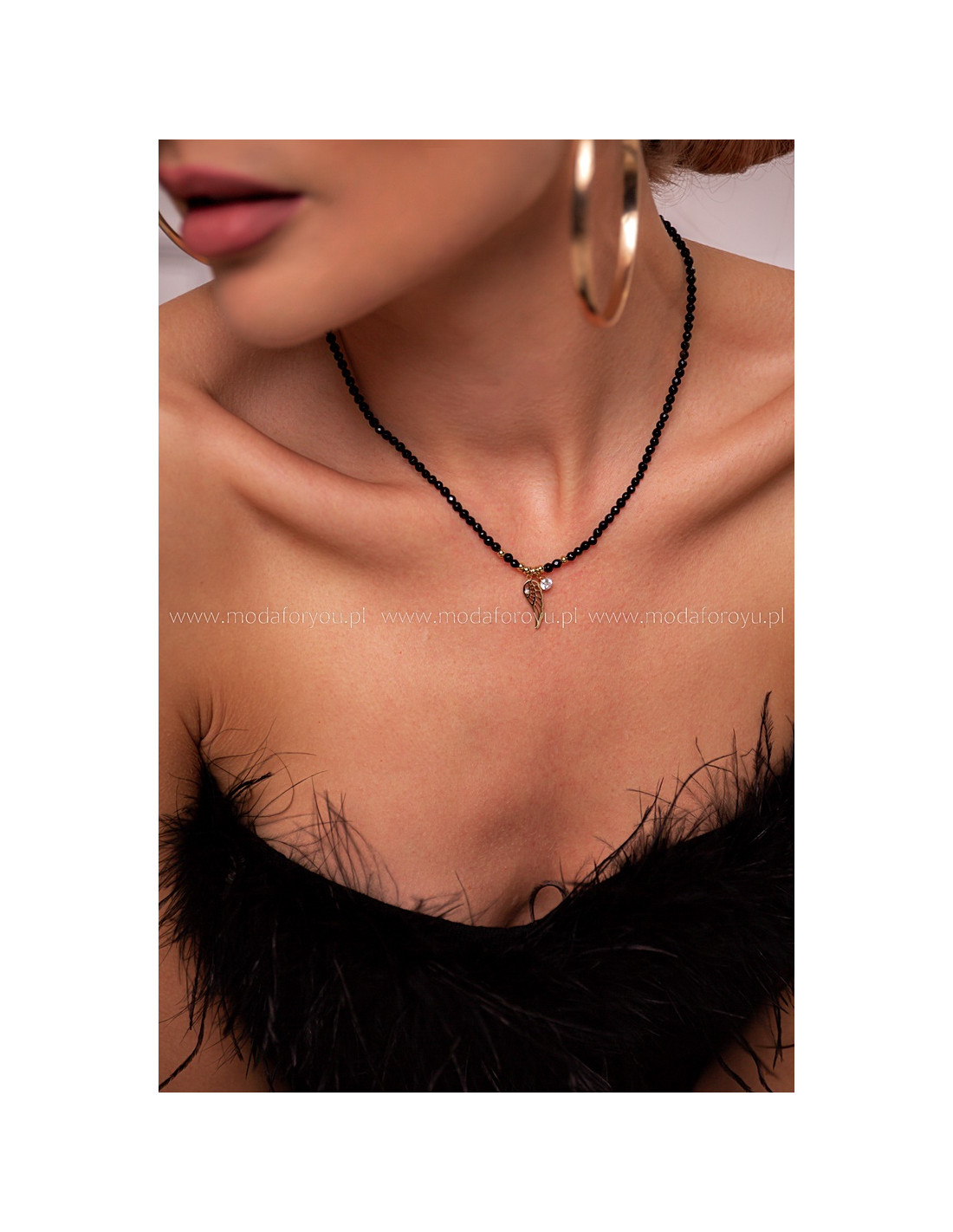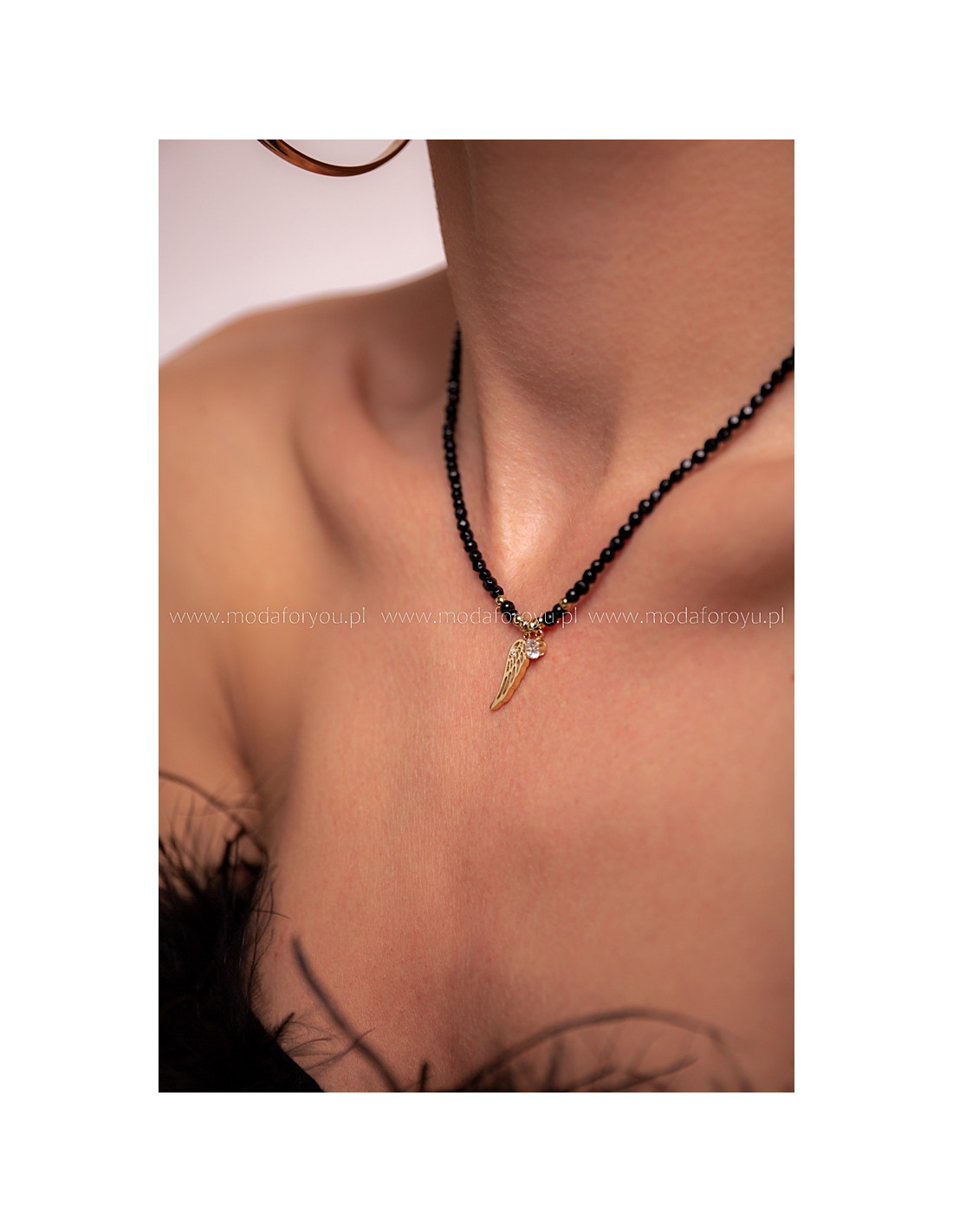 Naszyjnik z koralików z zawieszką piórko z cyrkoniom