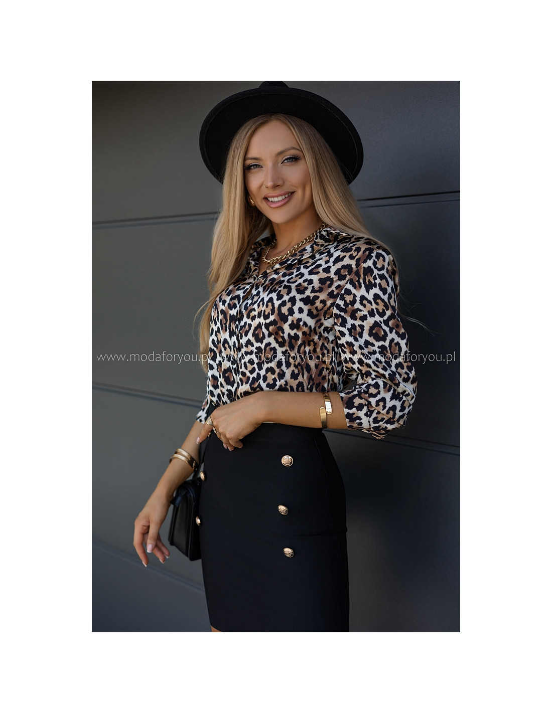 Koszula z satyny w panterkowy wzór. Zapinana na guziki, rękawki posiadają mankiety również zapinane na guziczek.