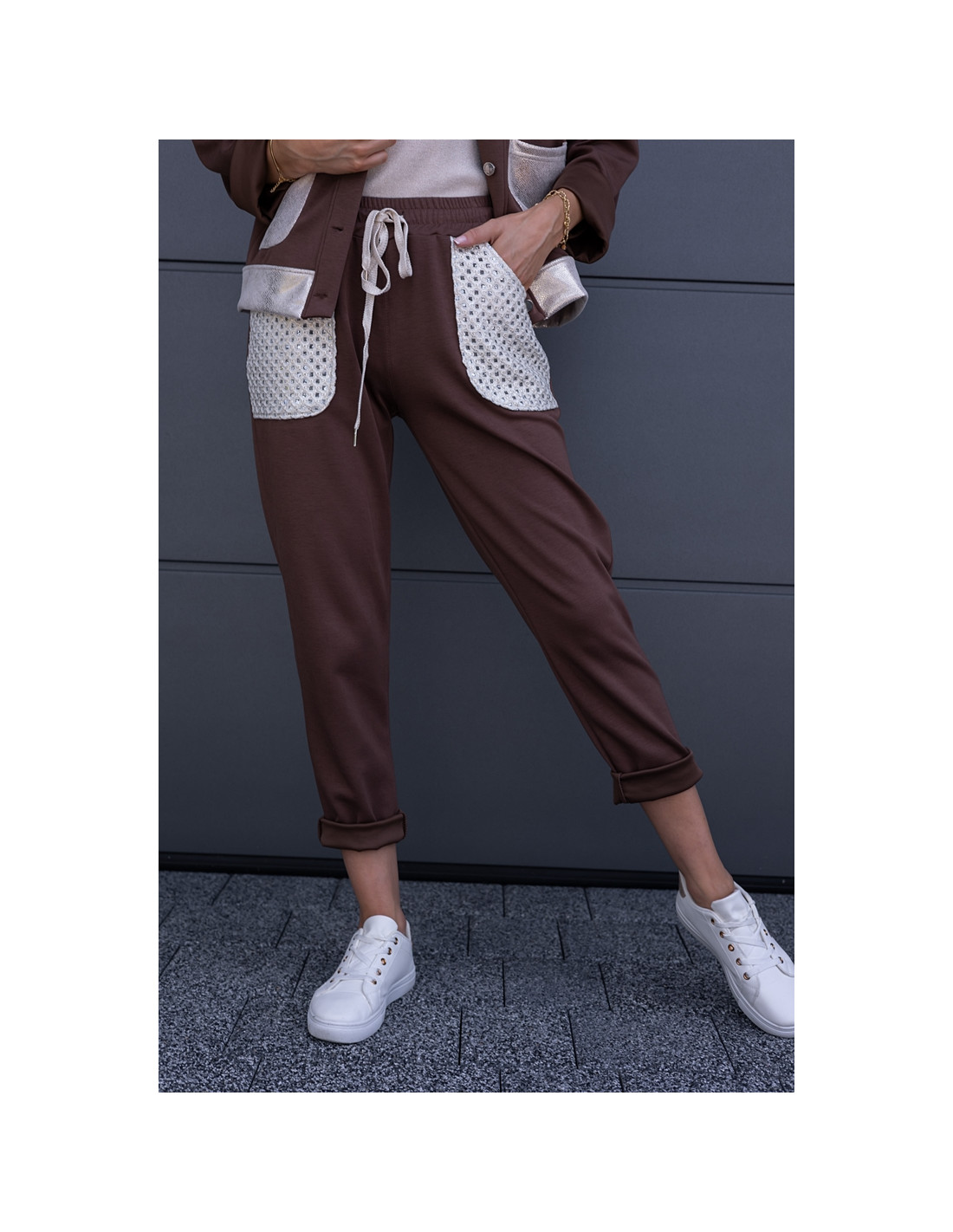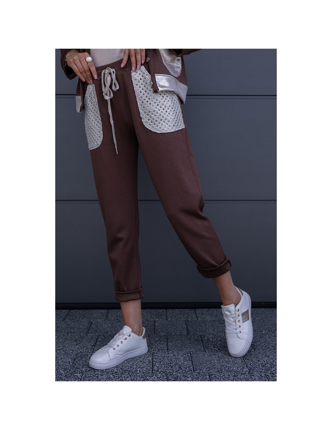 Posiadają gumkę i wiązanie w pasie. Posiadają również ozdobne kieszenie z siateczkowego - błyszczącego materiału.