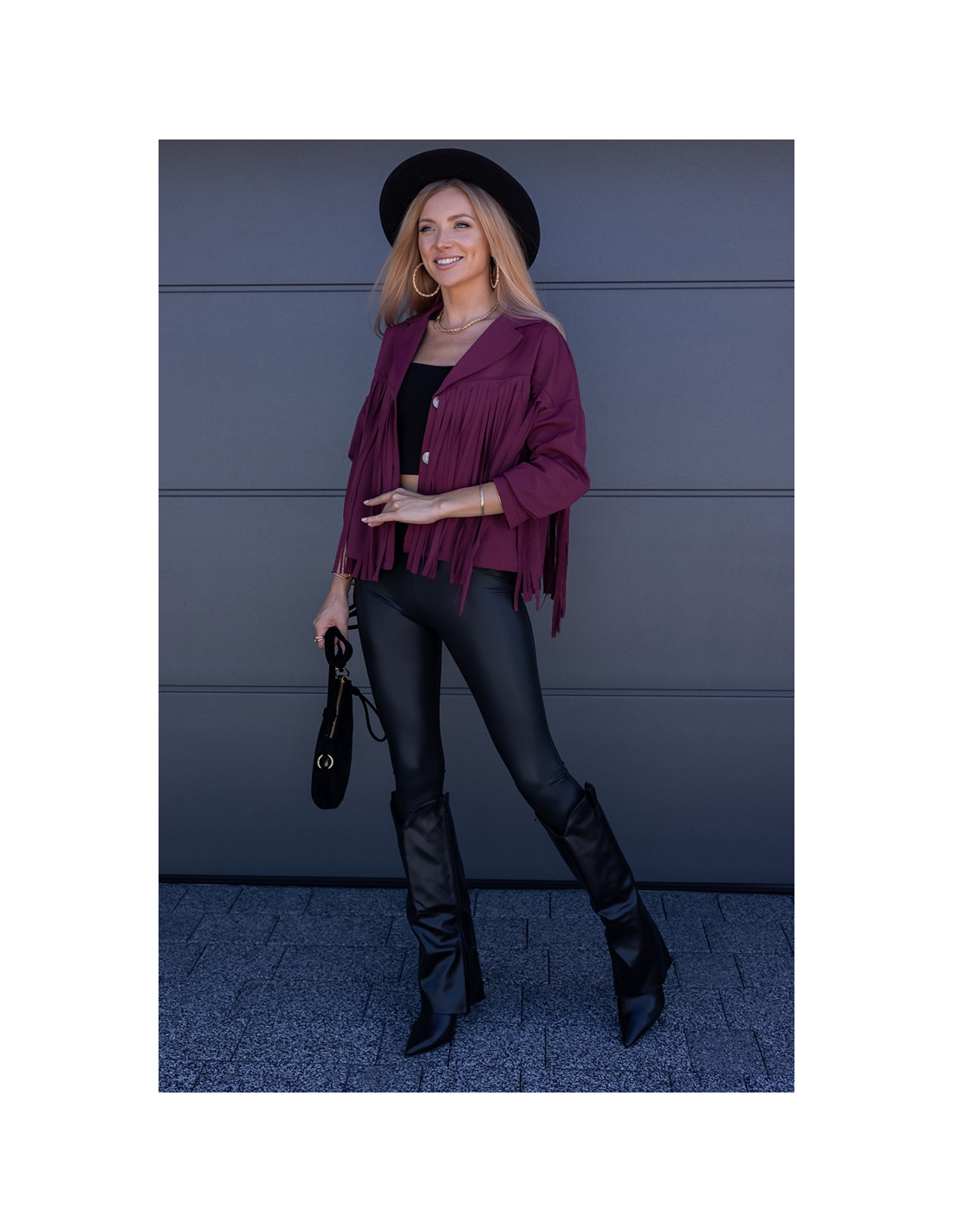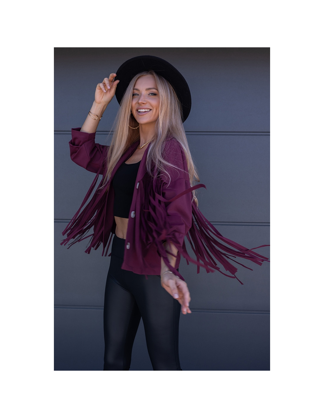 Wygodna kurteczka bez podszewki, idealne na chłodne dni, posiada ozdobne frędzle. Zapinana na guziki. Rękawki długie.
