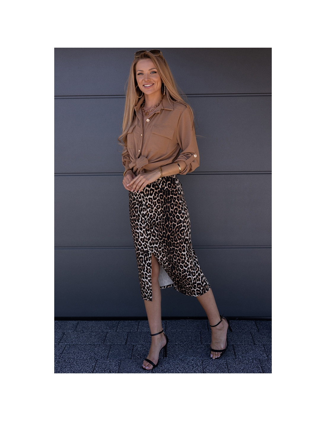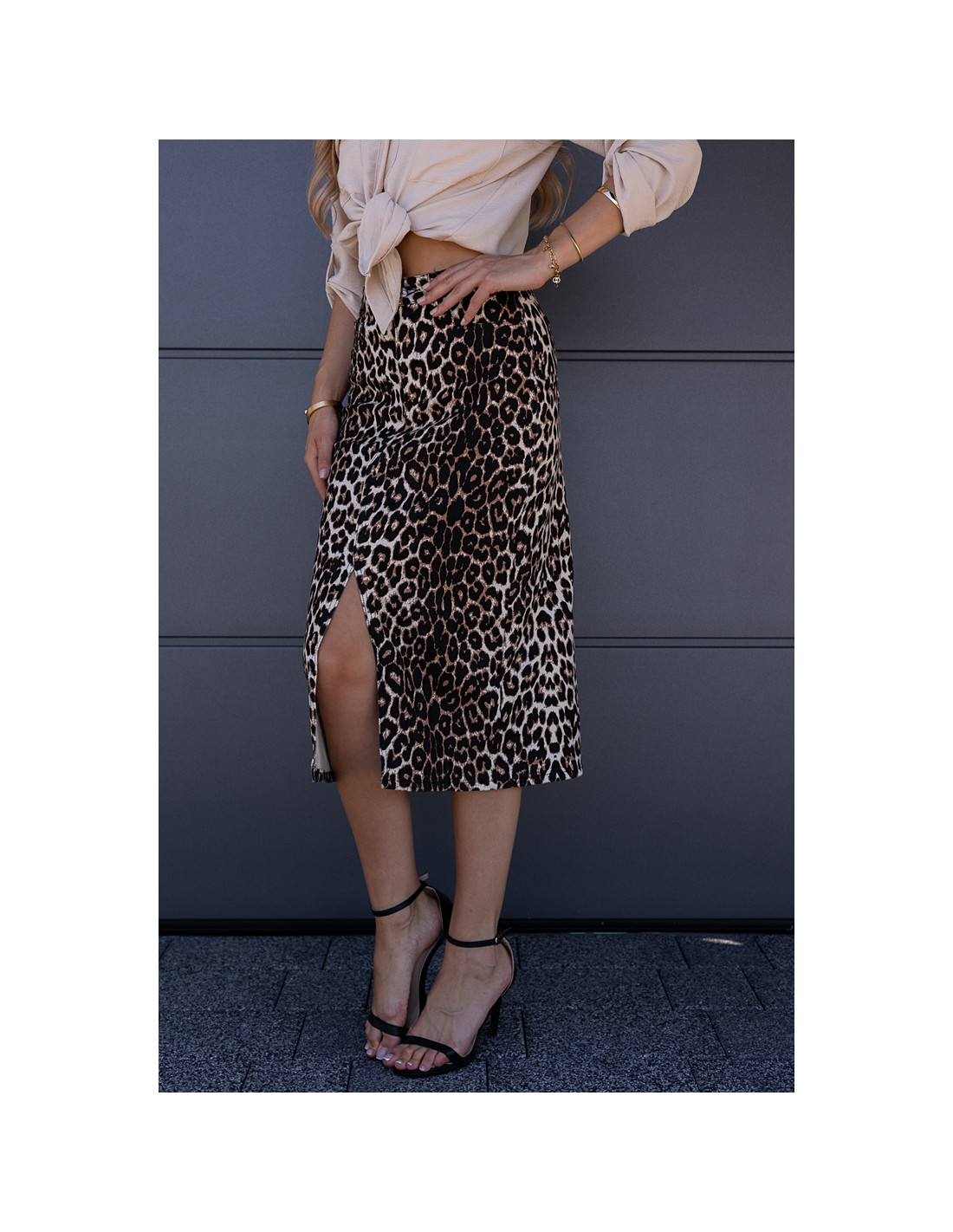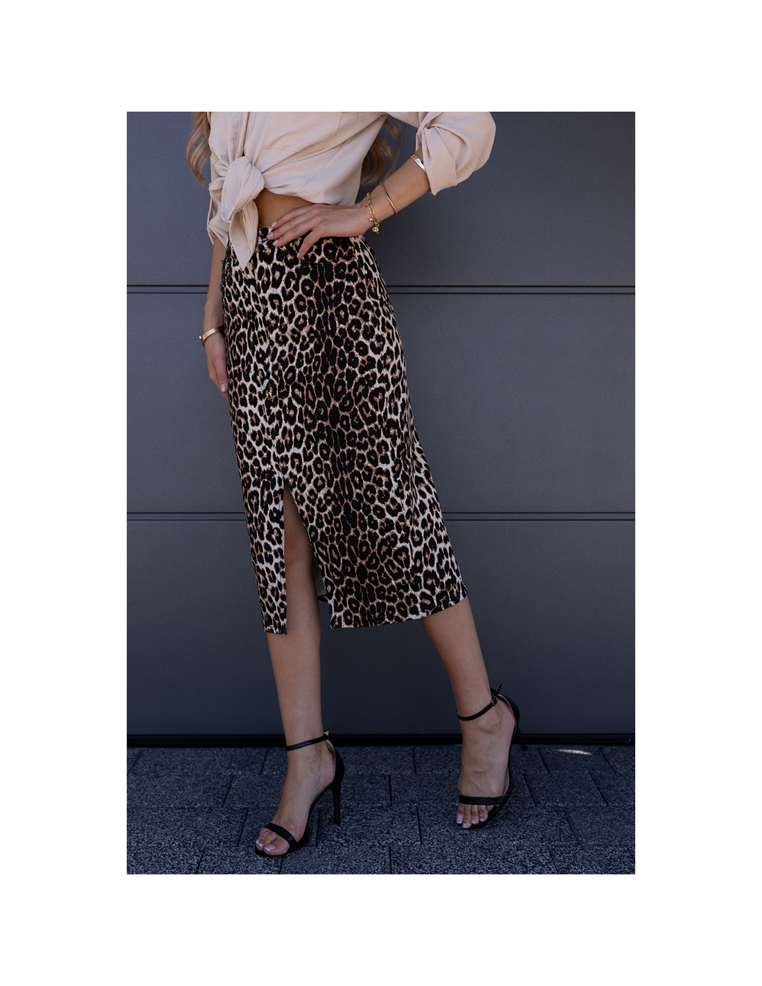 Spódnica z grubego jeansu w centki. Zapinana klasycznie na guzik i zamek. Z przodu lekkie rozcięcie, lekko się uciąga. Posiada kieszenie z przodu i z tyłu.