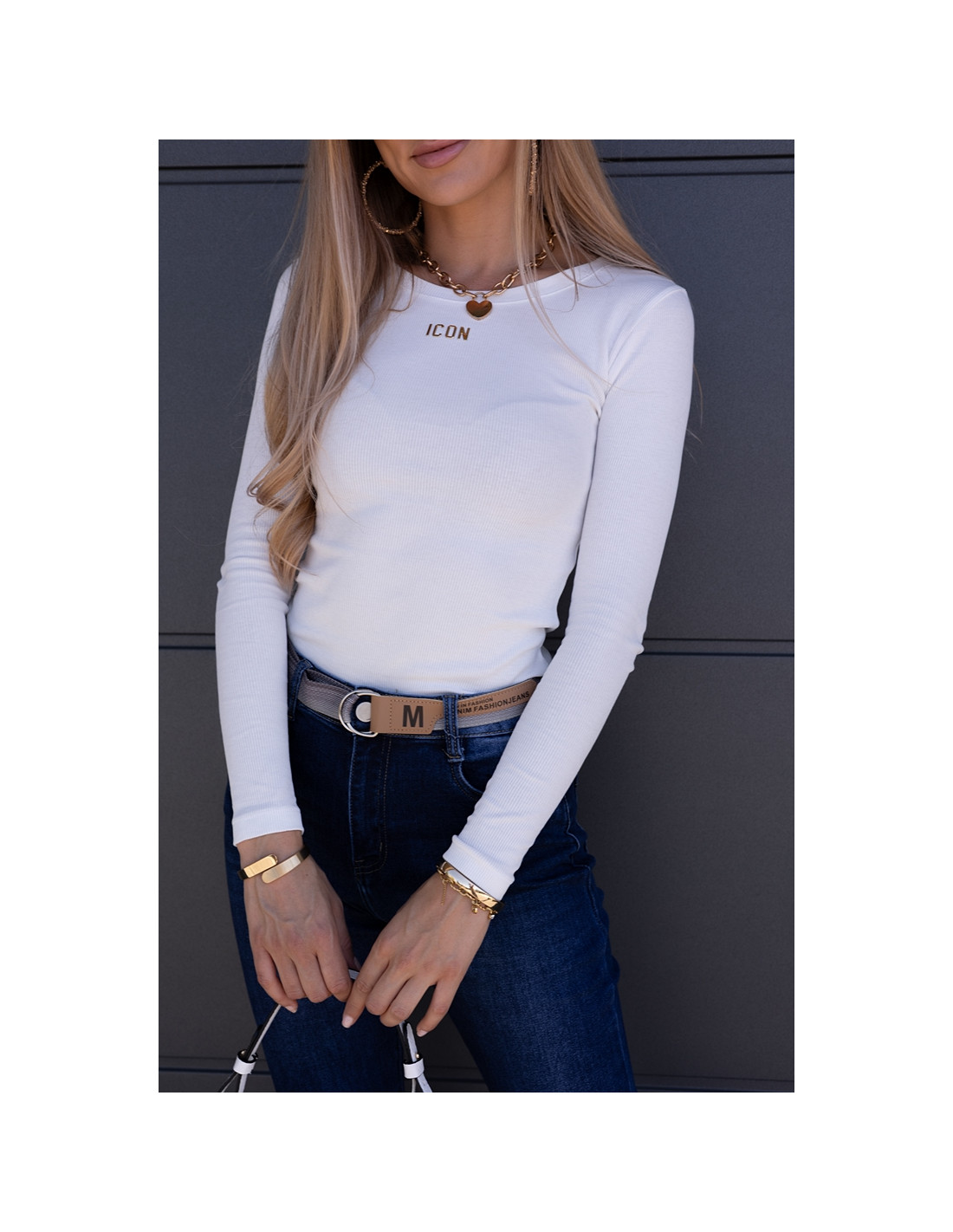 Bawełniana bluzka w prążek z naszywką. Materiał przyjemny w dotyku . Idealna propozycja na co dzień.