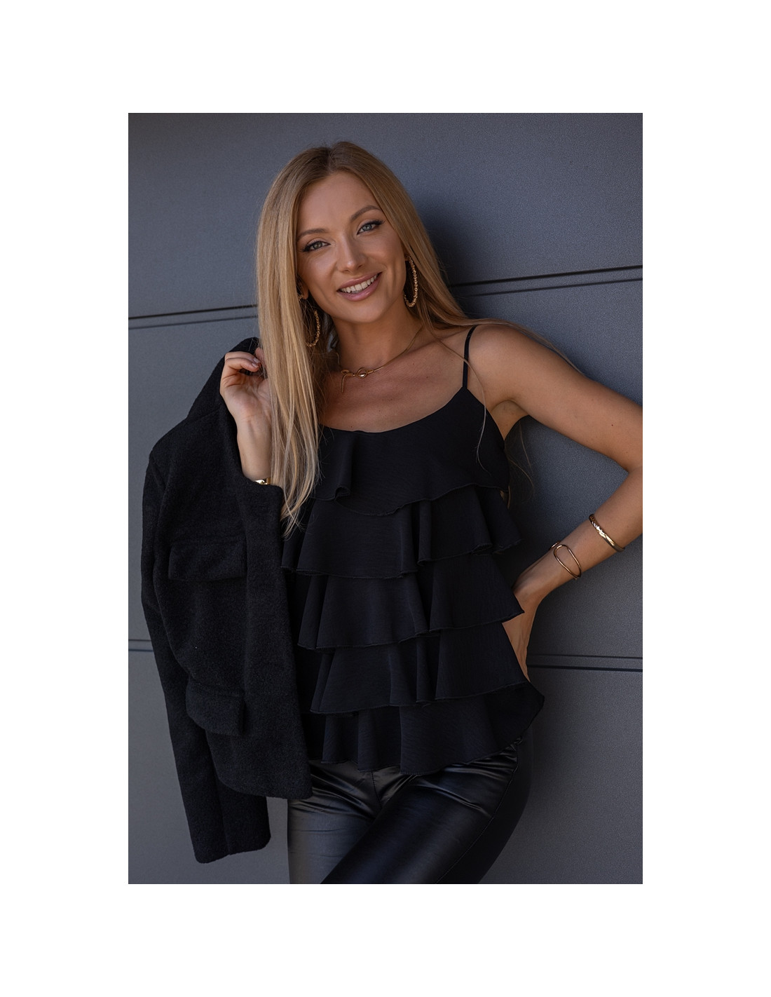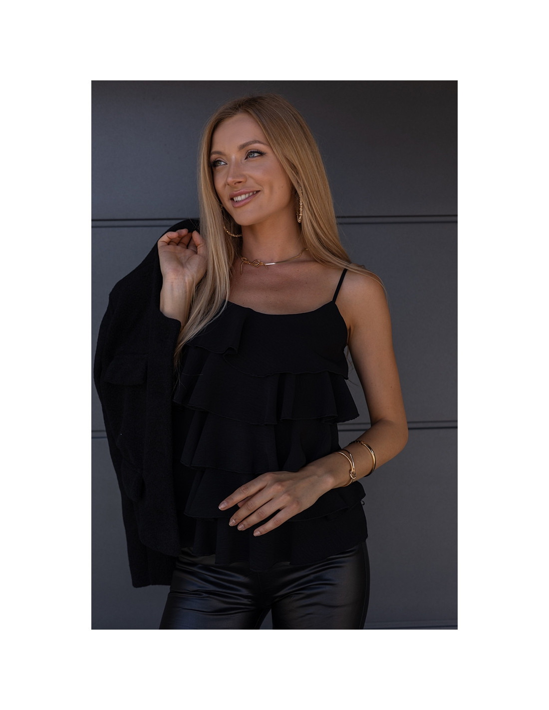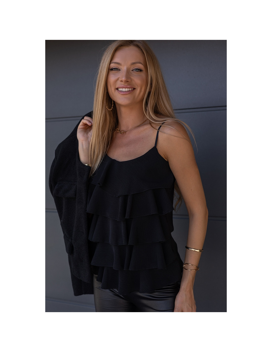 Bluzka z falbanami na regulowanych ramiączkach. Tył gładki.