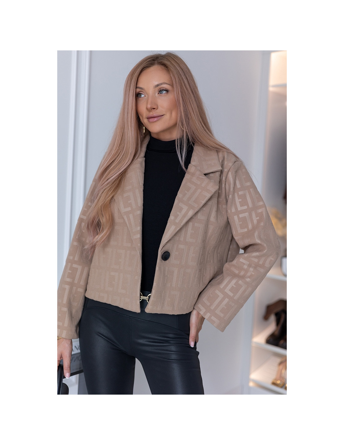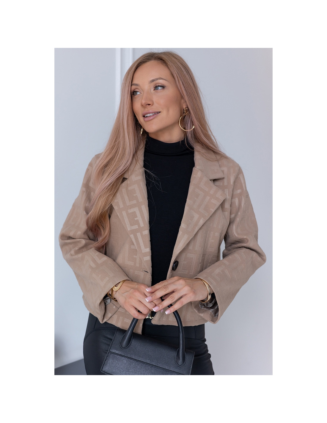 Kurtka żakietowa we wzory, zapinana na jeden guzik. Wszyte gąbki na ramionach. Model owersizowy.