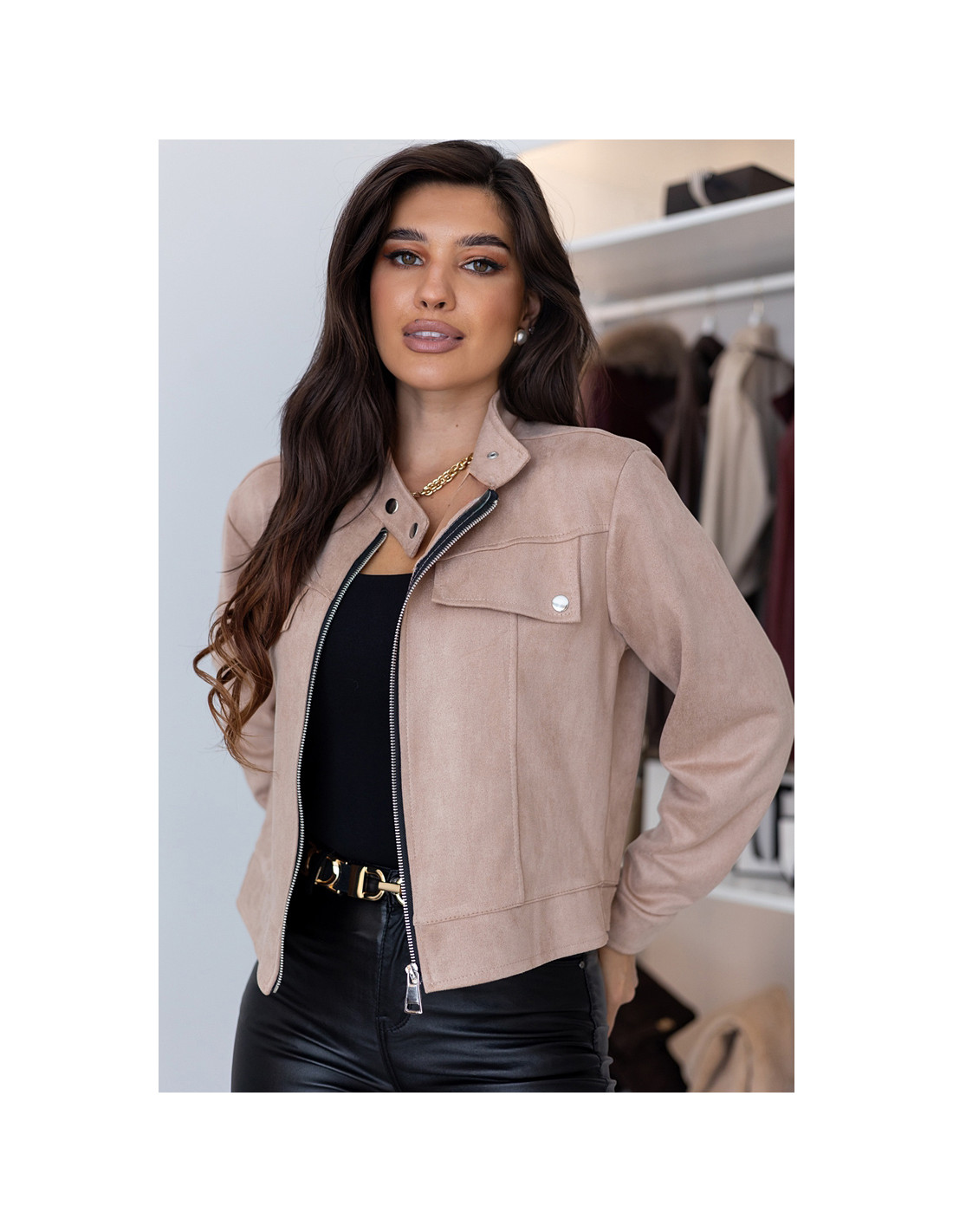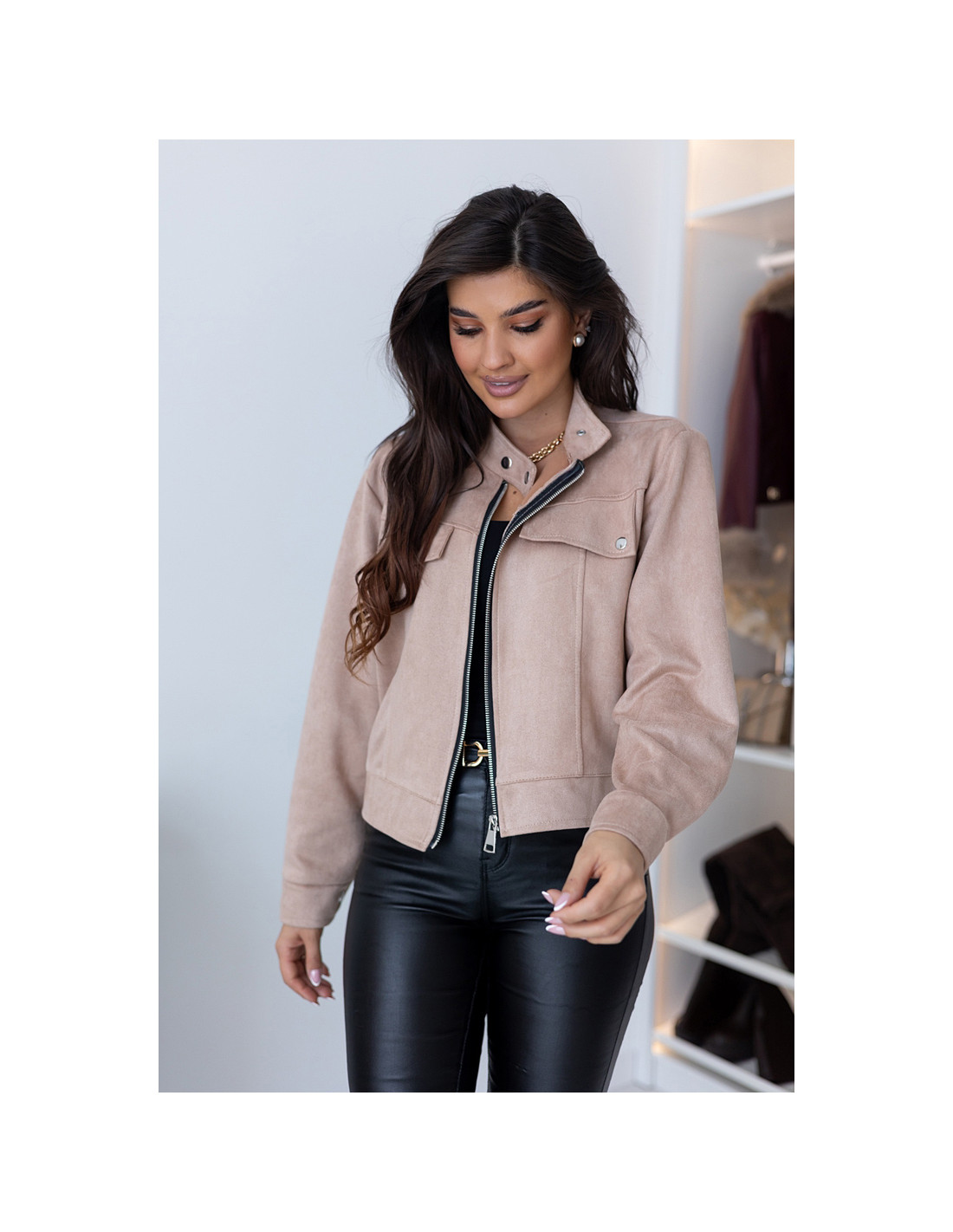 Kurtka Zamszowa Amber Ciemny Beż