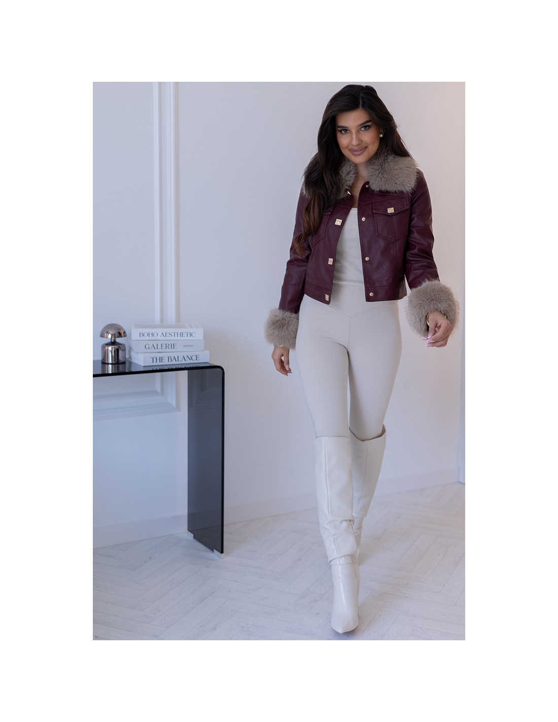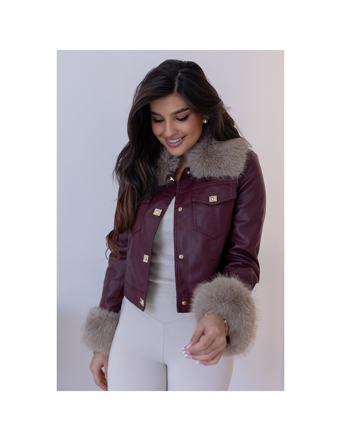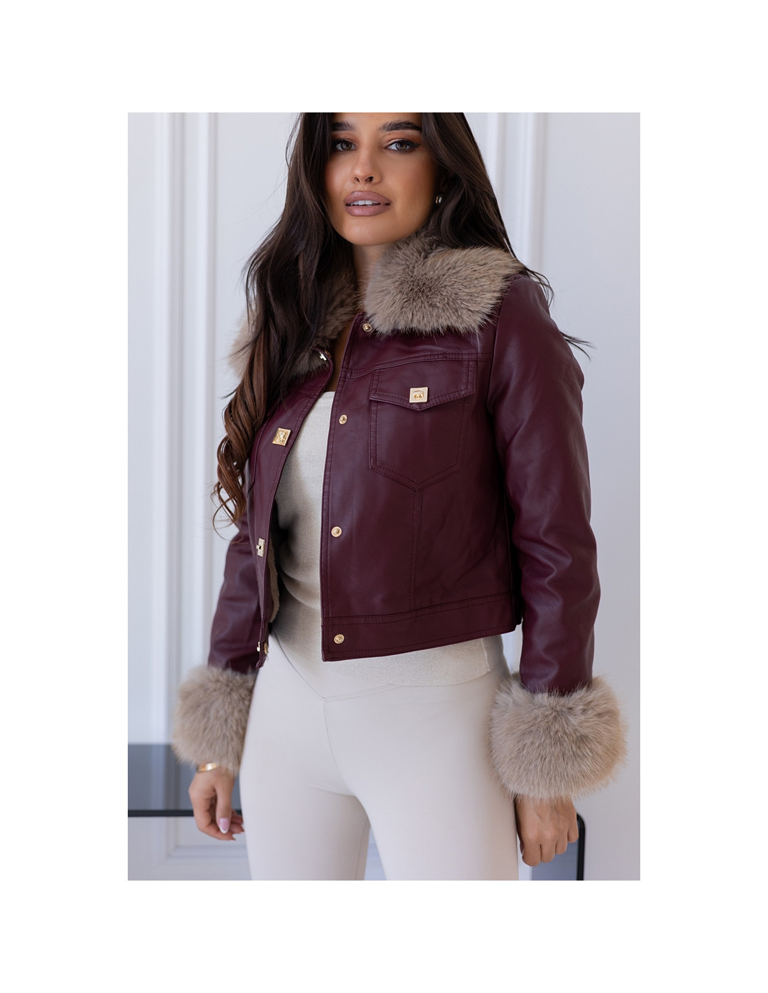 Modna i stylowa kurtka z eko skaju z dodatkiem - odpinanego futerka na kołnierzyku oraz na rękawkach. Zapinana na złote klipsy. Taliowany i dopasowany model. W podszewkę wszyty ocieplacz-miś. Idealna propozycja na zimne dni.