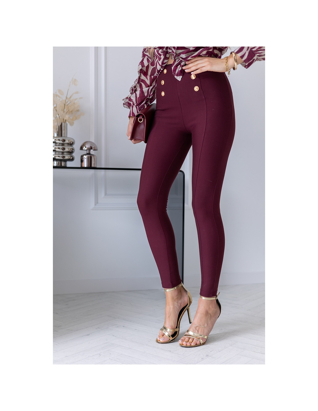 Dopasowane , elastyczne leginsy ze złotymi guzikami. Podwyższony stan, w talii guma.