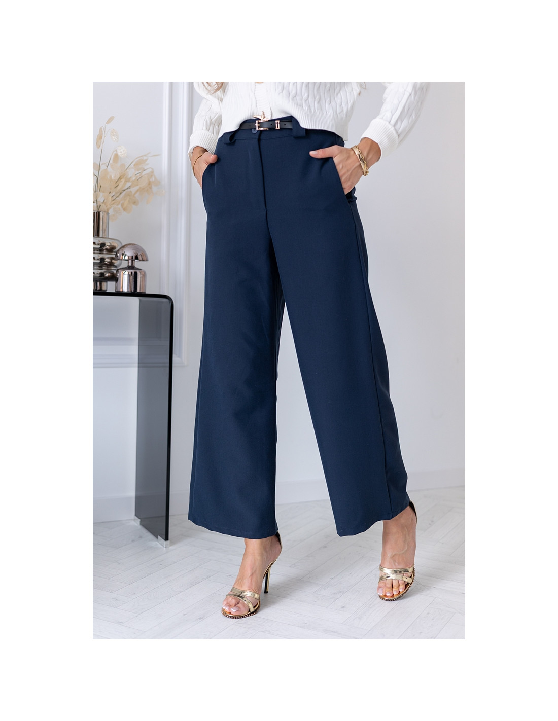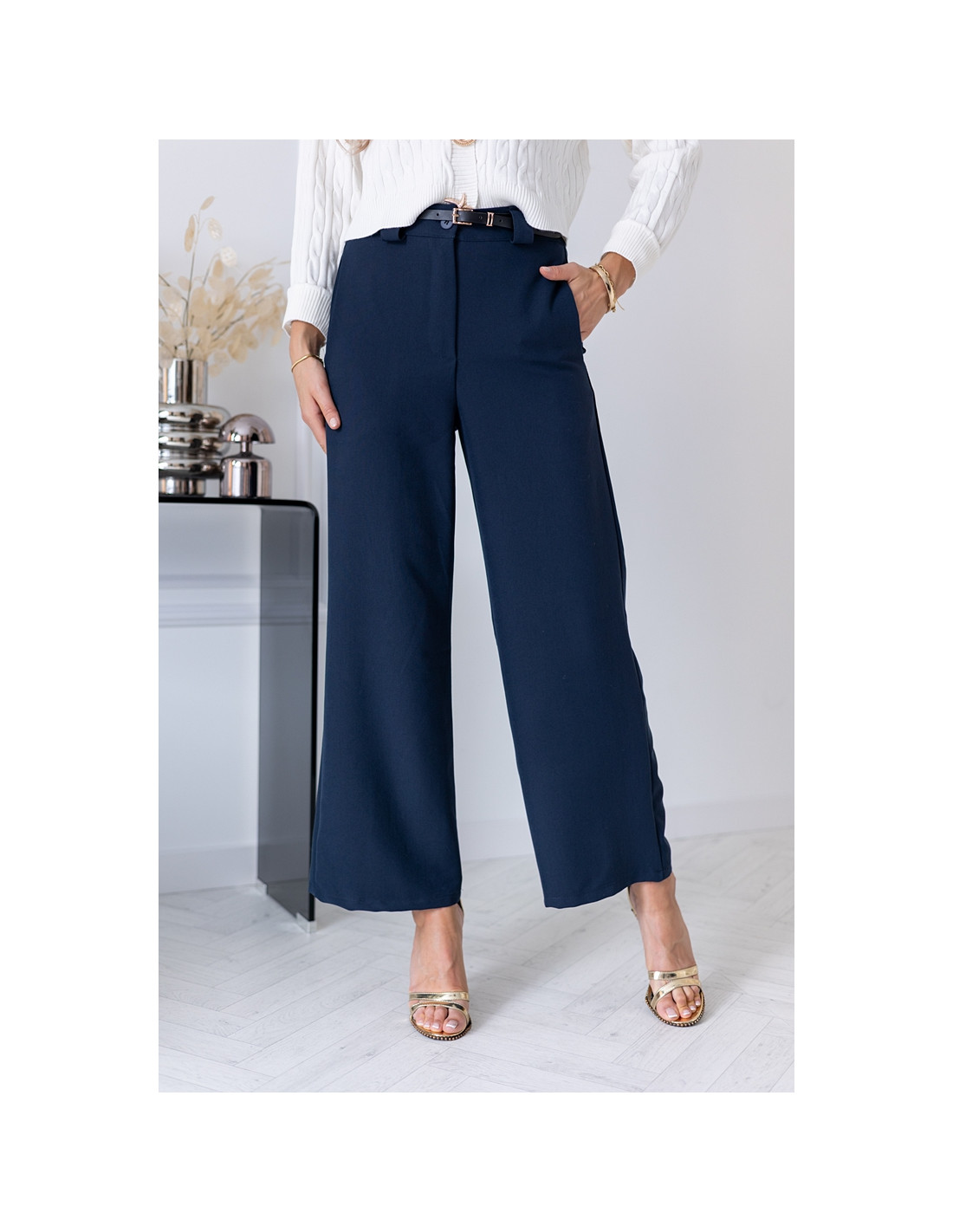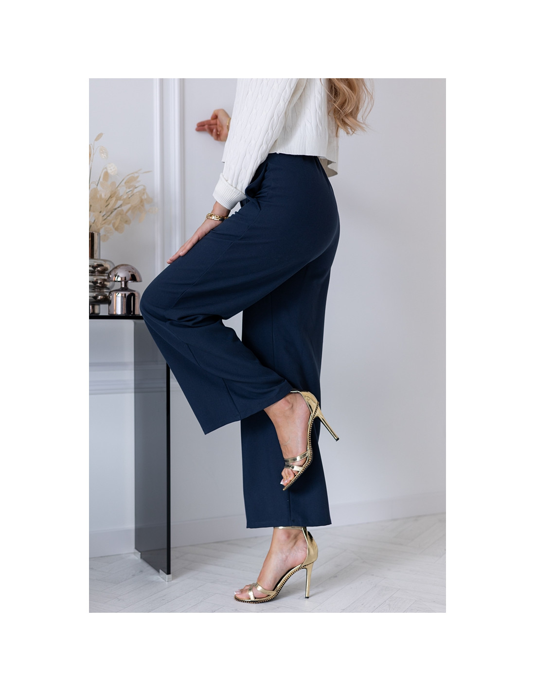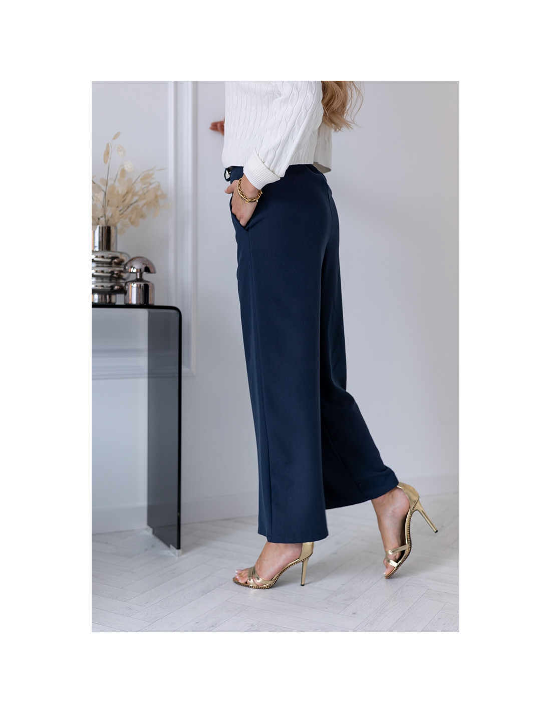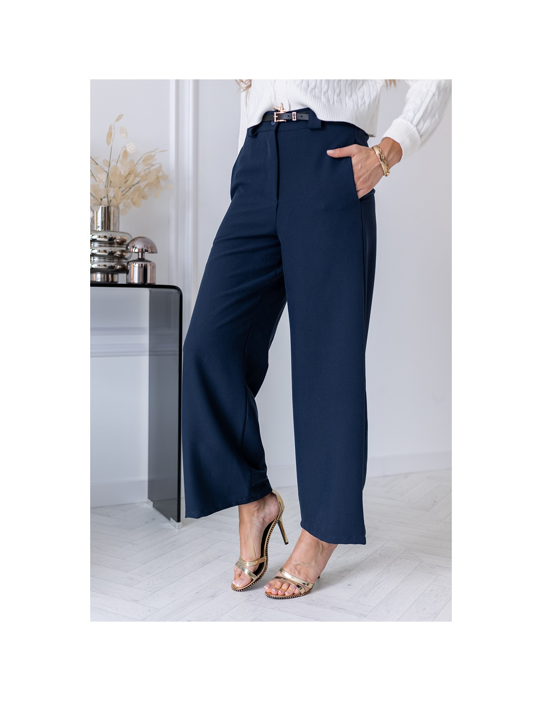 Eleganckie spodnie z podwyższonym stanem iszerokimi nogawkami.Zapinane na zamek i cienki paseczek-lekko ciągnący materiał.