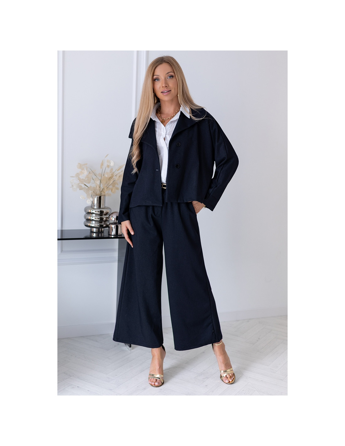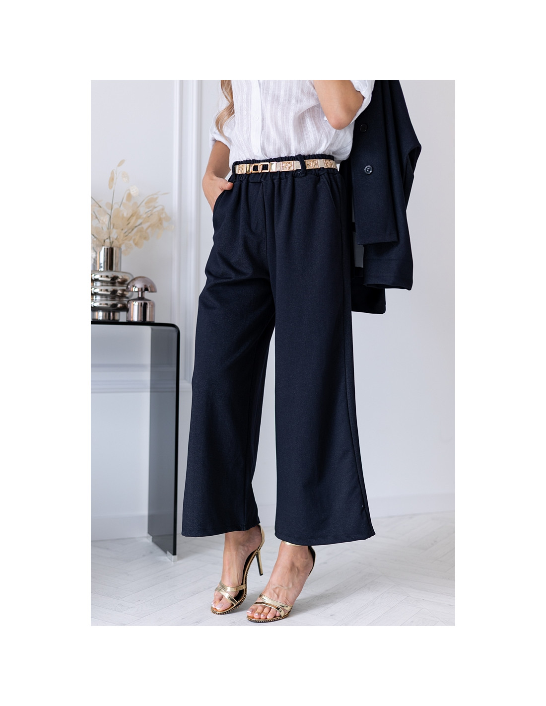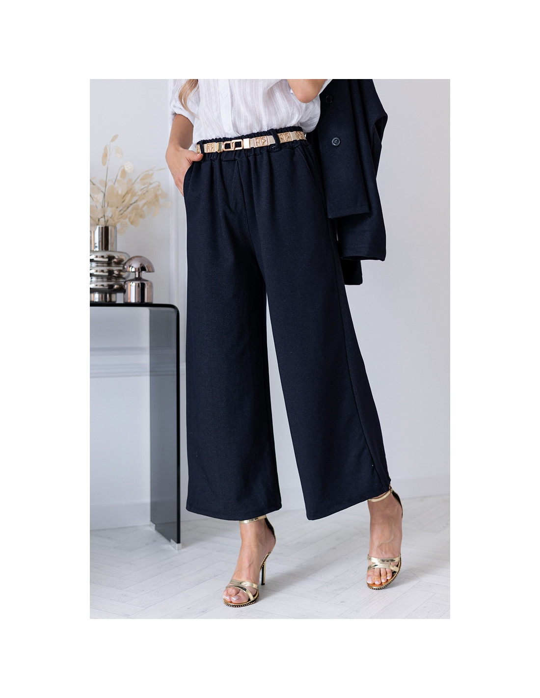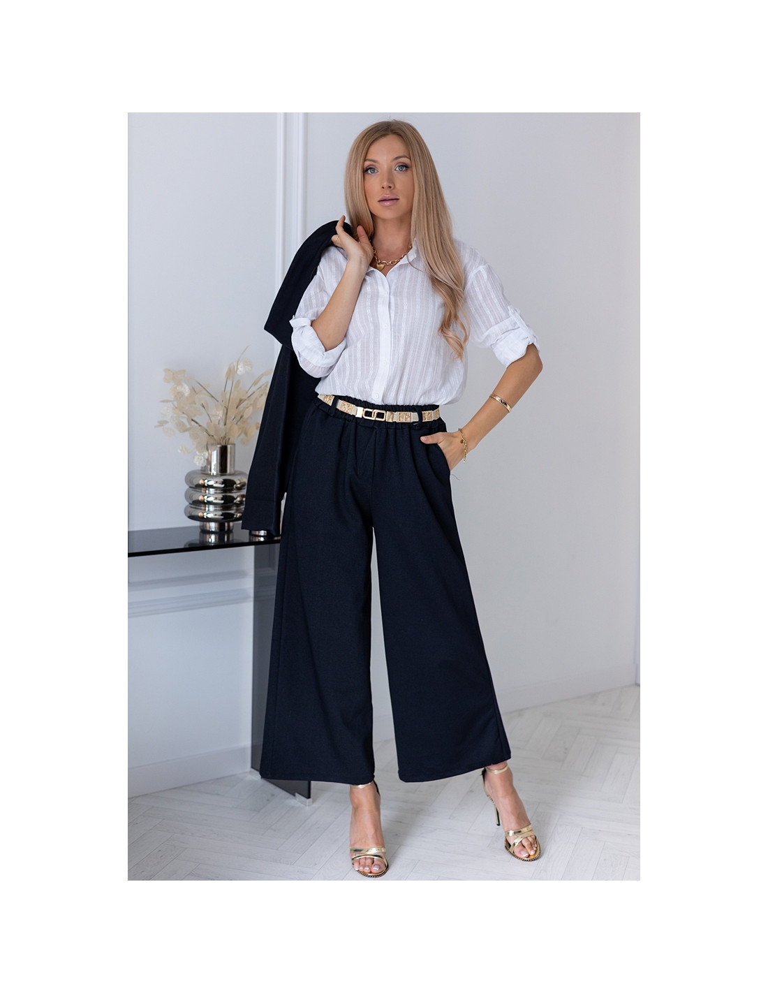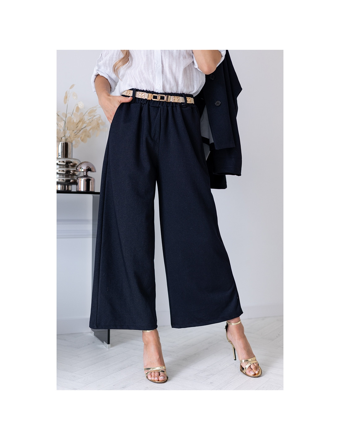To model z wyższym stanem o lużnym kroju i szerokich nogawkach,elastyczne mocno rościągliwe.