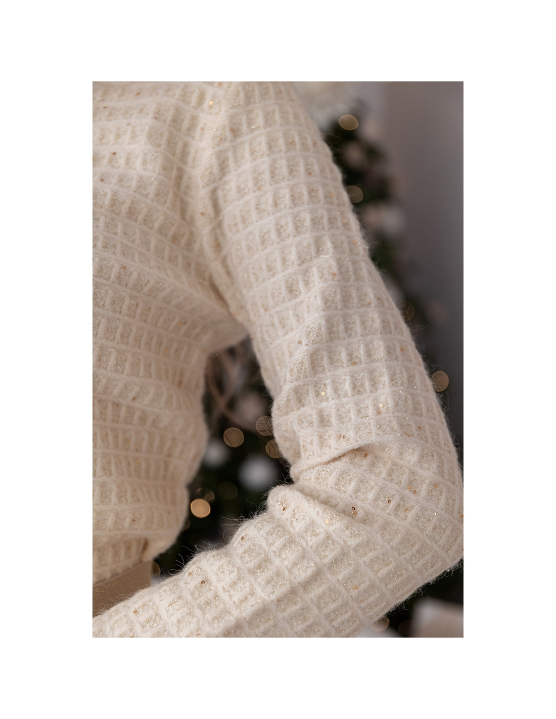 Ekri dzianinowa sukienka o subtelnej strukturze „waffle” to połączenie klasy, wygody i kobiecego stylu. Miękka, elastyczna tkanina pięknie dopasowuje się do sylwetki, jednocześnie nie opinając ciała. Model o prostym kroju z długością mini, idealnie sprawdzi się zarówno na co dzień, jak i na wyjątkowe okazje – od rodzinnych świąt po zimowe przyjęcia.