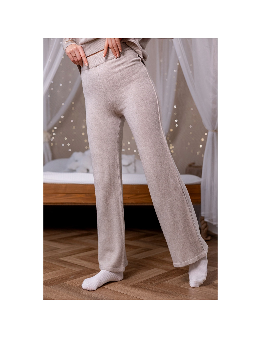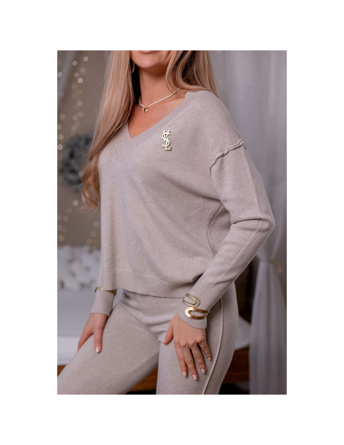 Komplet dzianinowy z dekoltem V i prostymi spodniami