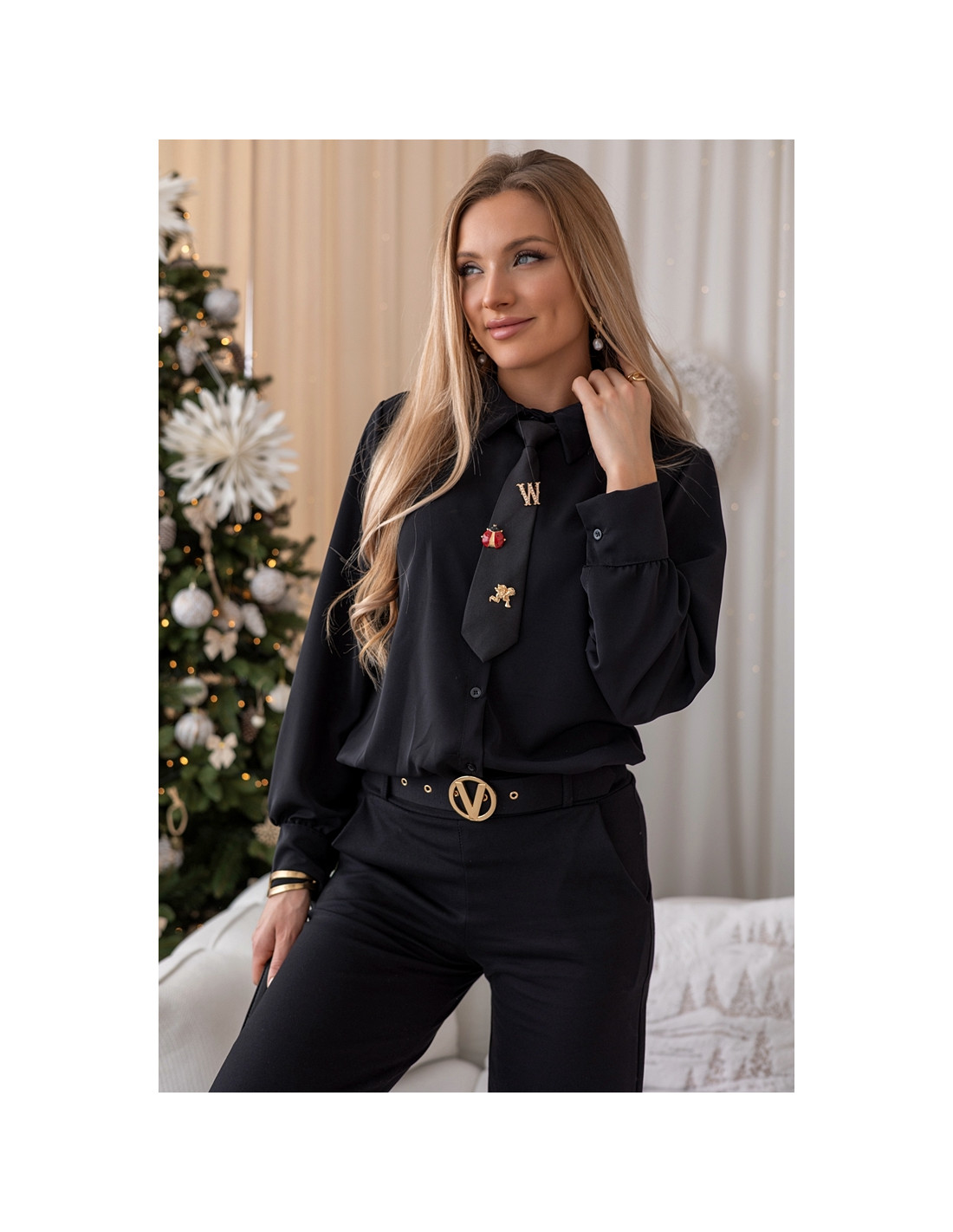 Elegancka koszula o klasycznym kroju z miękkiej, przyjemnej tkaniny. Dołączony krawat z dekoracyjnymi aplikacjami tworzy unikalny, modowy akcent. Doskonała propozycja do pracy, na spotkania czy świąteczne okazje.