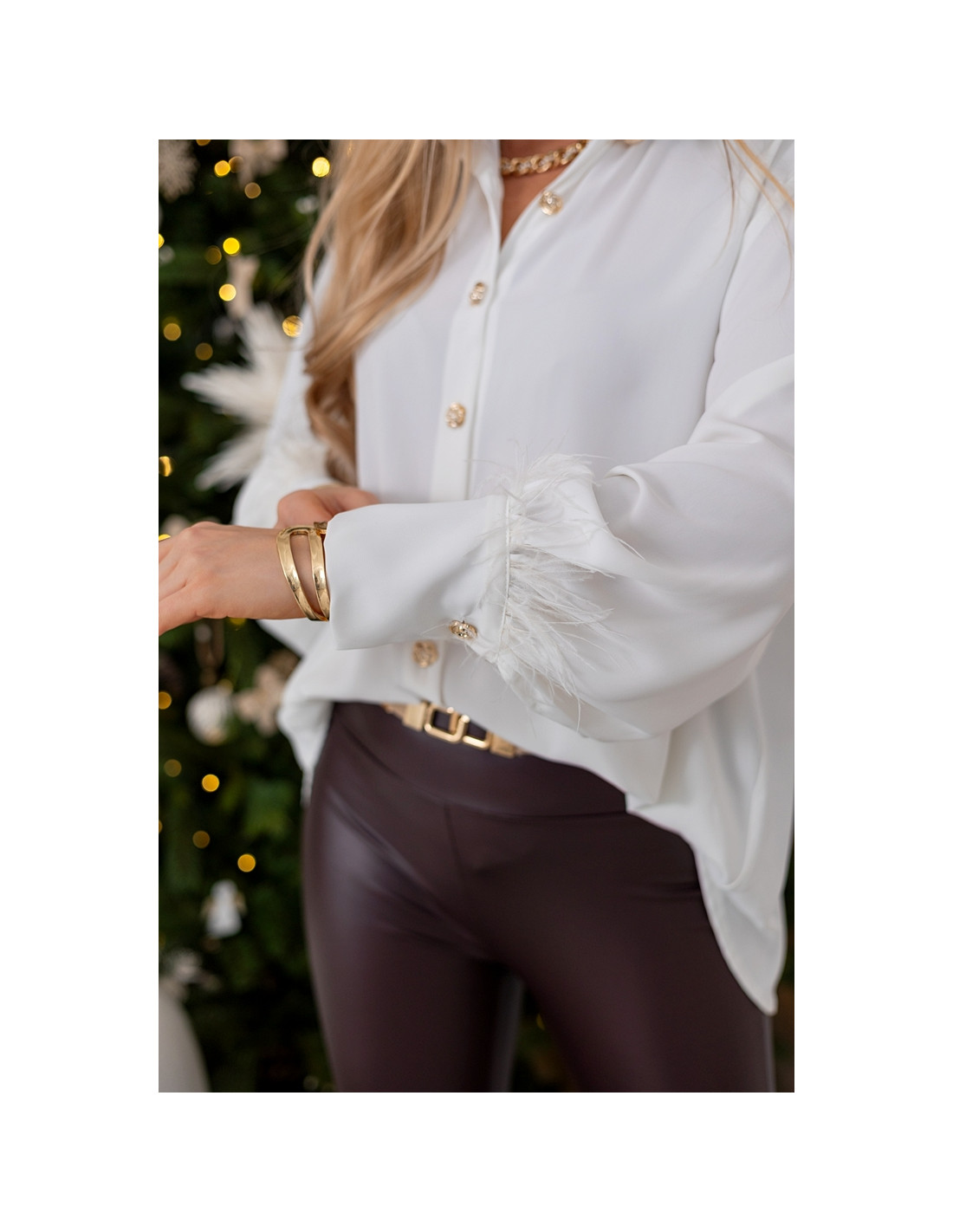 ✨ Koszula z ozdobnymi guzikami i piórami przy rękawach