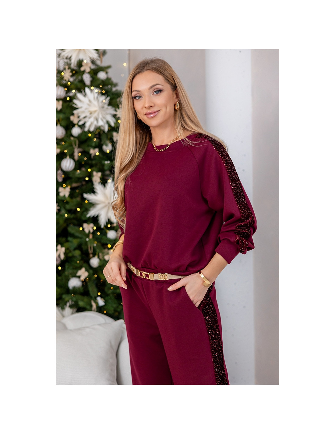 Komplet Sporti z Cekinami Bordowy