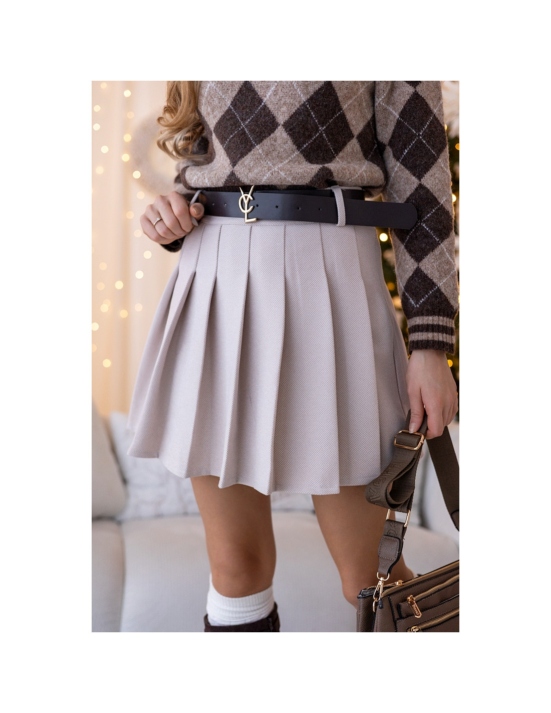 Dziewczęca i jednocześnie elegancka spódniczka z wyraźnie zaznaczonymi plisami, które pięknie układają się przy każdym ruchu. Wykonana z przyjemnego, lekko strukturalnego materiału, zapewniającego wygodę i świetne trzymanie fasonu.