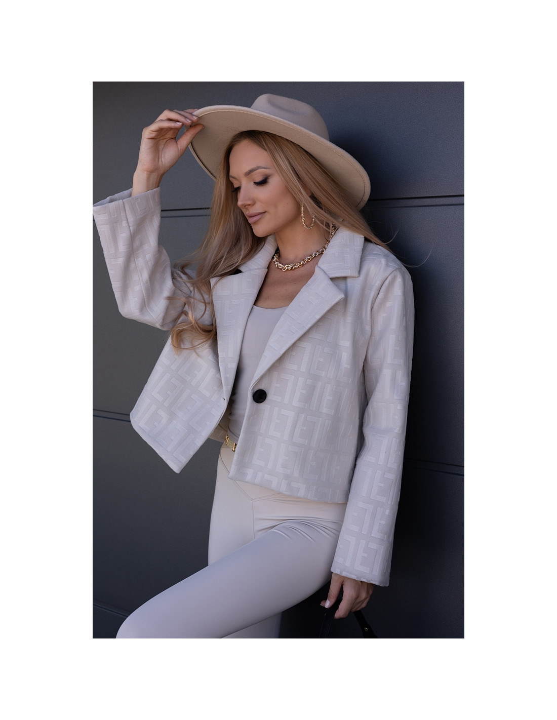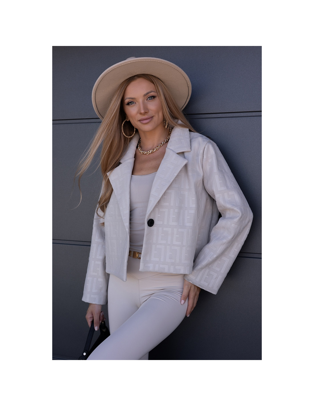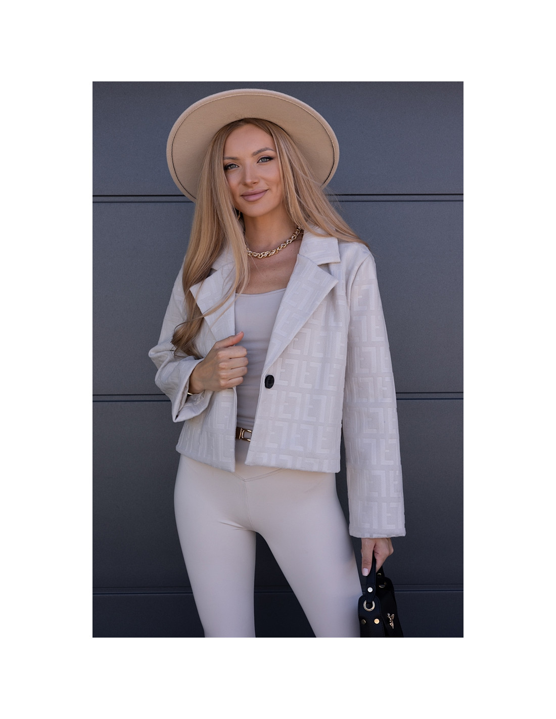 Kurtka żakietowa we wzory, zapinana na jeden guzik. Wszyte gąbki na ramionach. Model owersizowy.