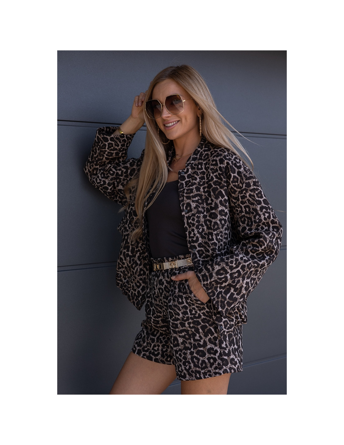 Panterkowa Kurtka typu bomberka, z gumką u dołu. Zapinana na napy. Posiada podszewkę. Szeroki, oversizowy krój. Rękawki obniżane, luźna i wygodna propozycja. Polecamy w zestawie ze spodenkami Panther.
