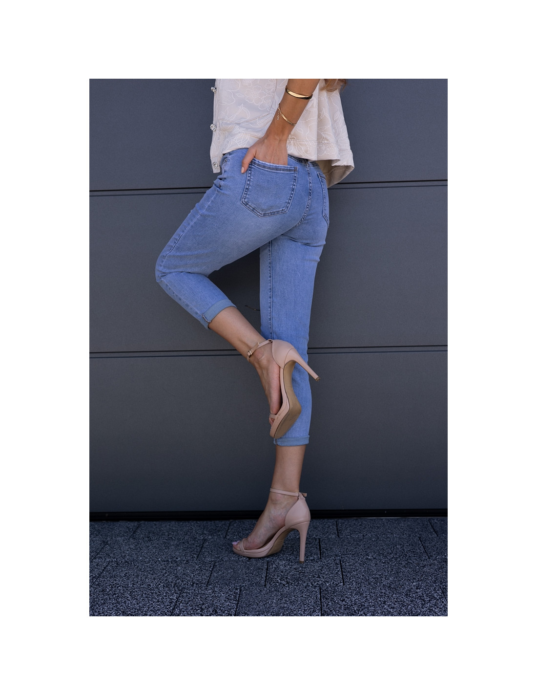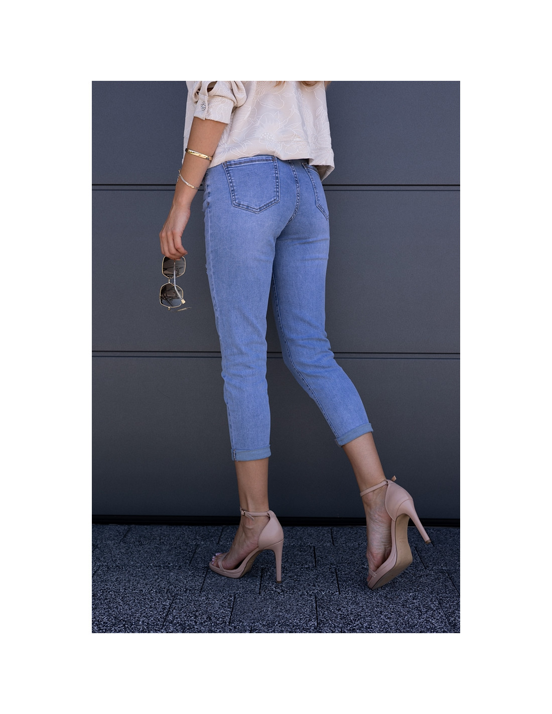 Luźne jeansy o kroju mom fit , wygodne, dobrze się ciągną i świetnie układają. Długość 7/8- podwijane. Posiadają kieszenie, zapinanie klasycznie na zamek i guzik.