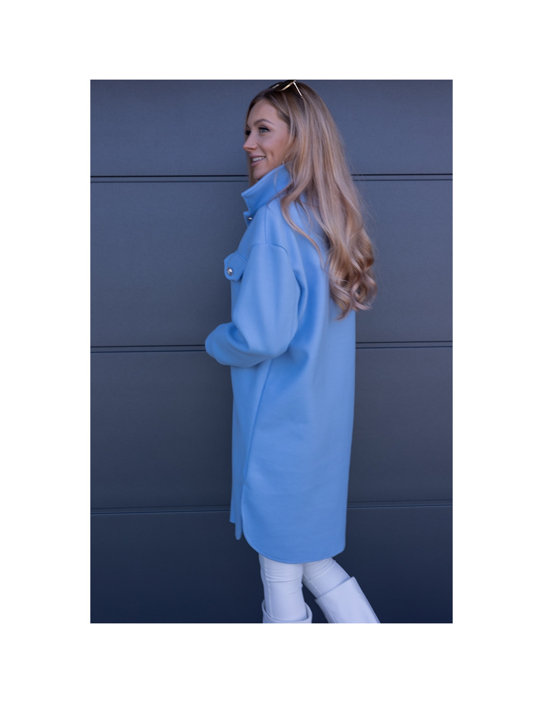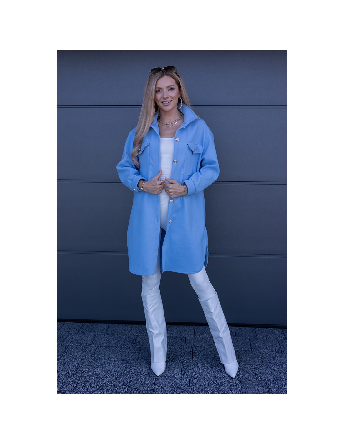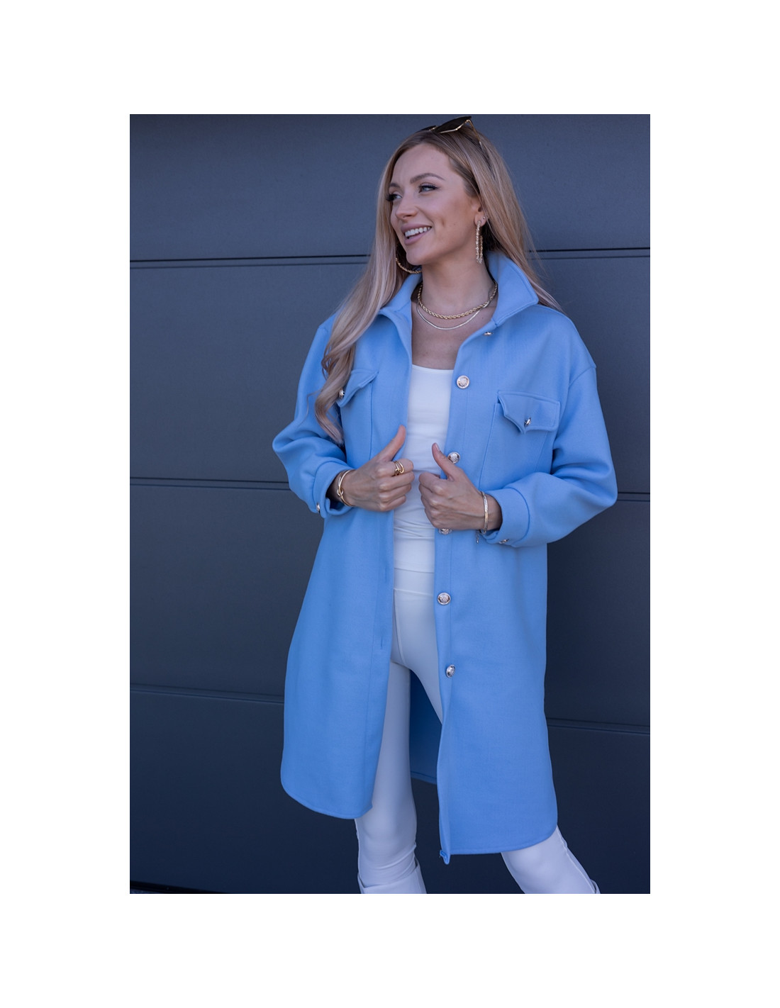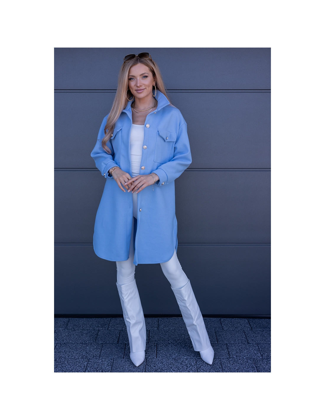 Kurtka Koszulowa Long Błękitna
