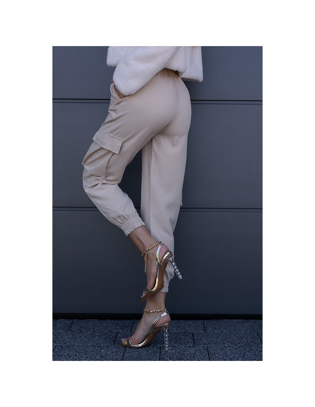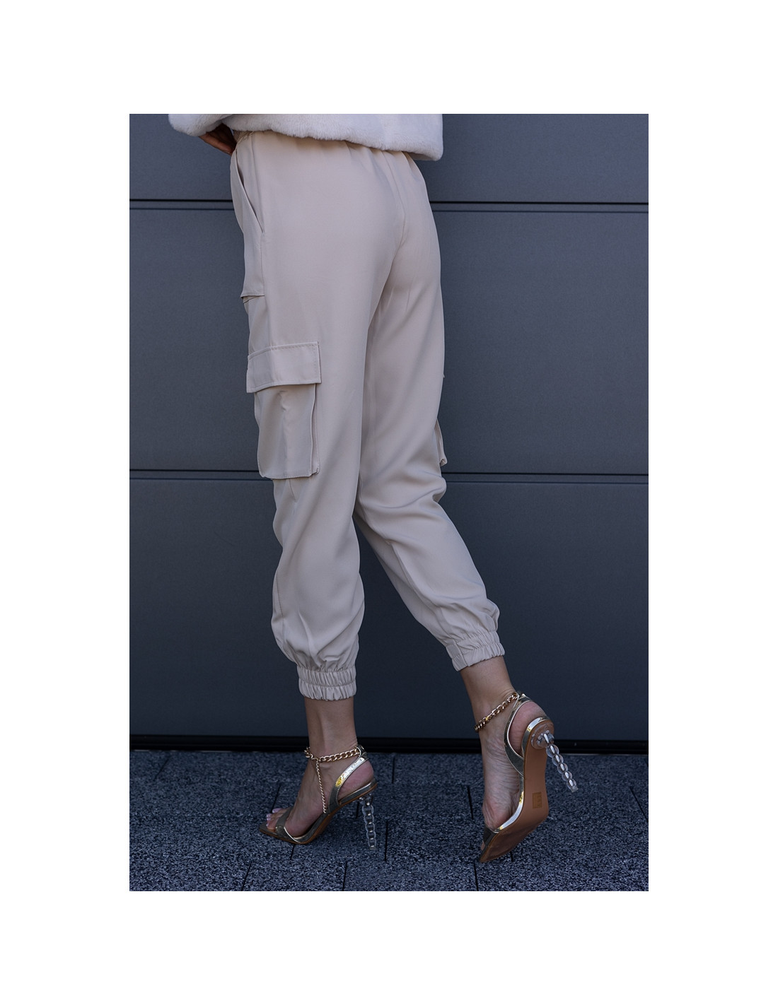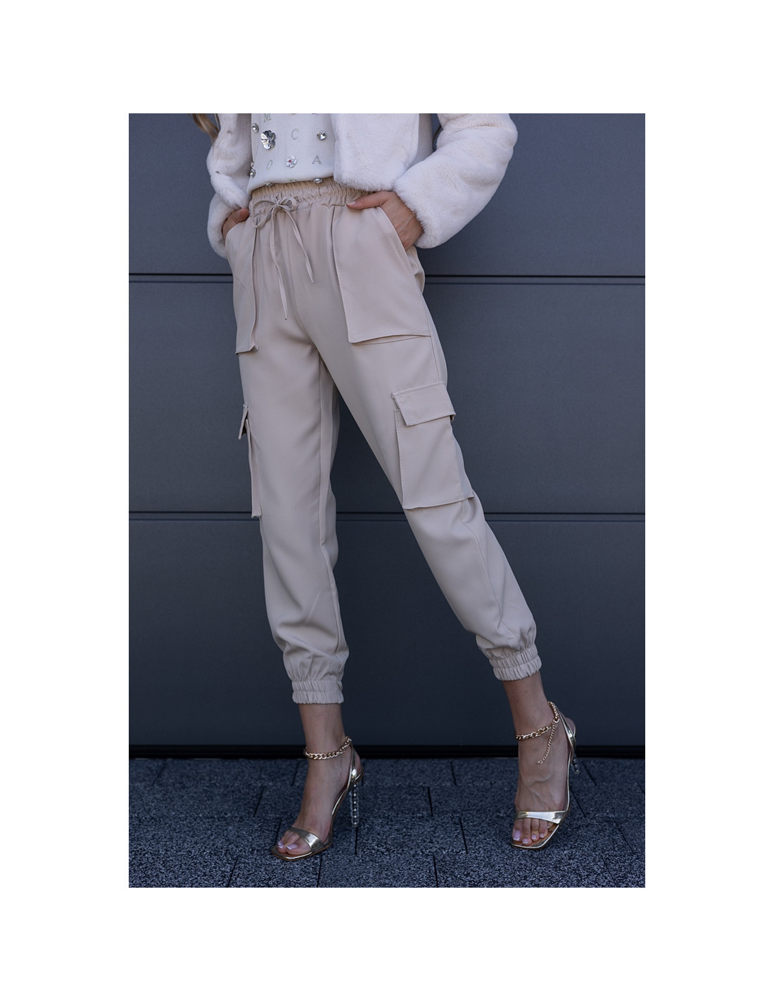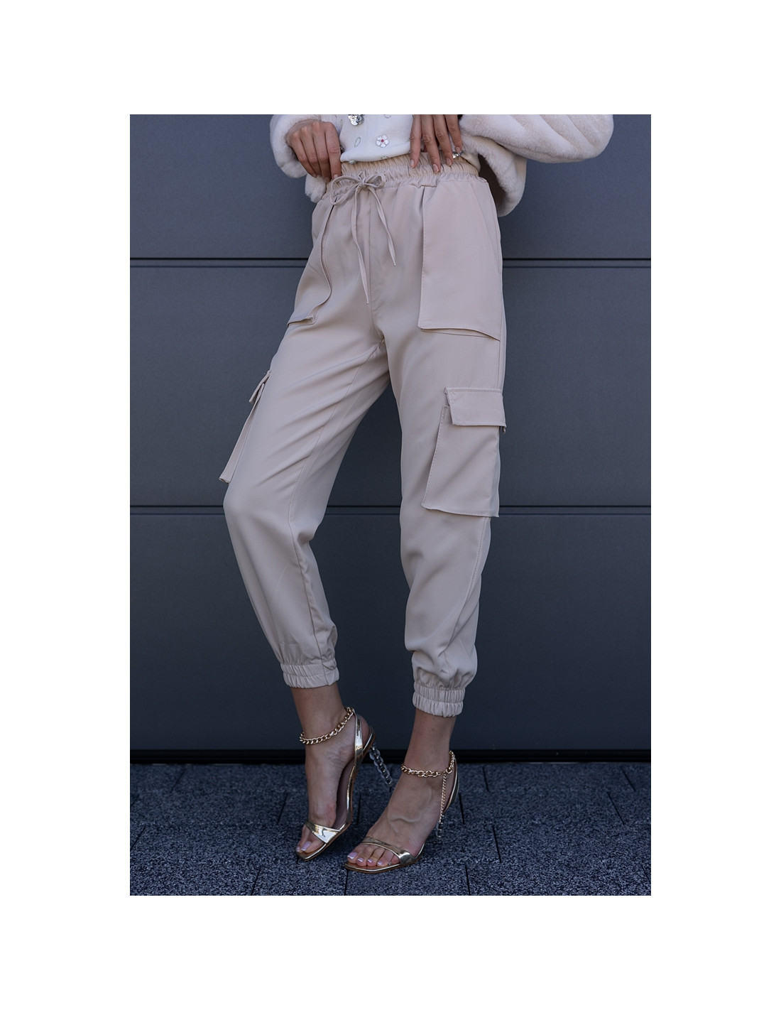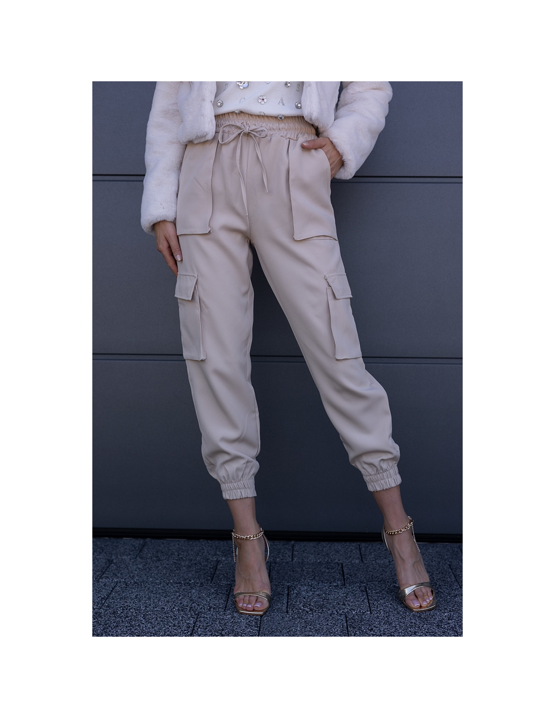 Połączenie stylu sportowego i eleganckiego. Spodnie, które założysz na co dzień jak i na socjalne wyjście. W pasie guma i wiązanie, bokami kieszenie.