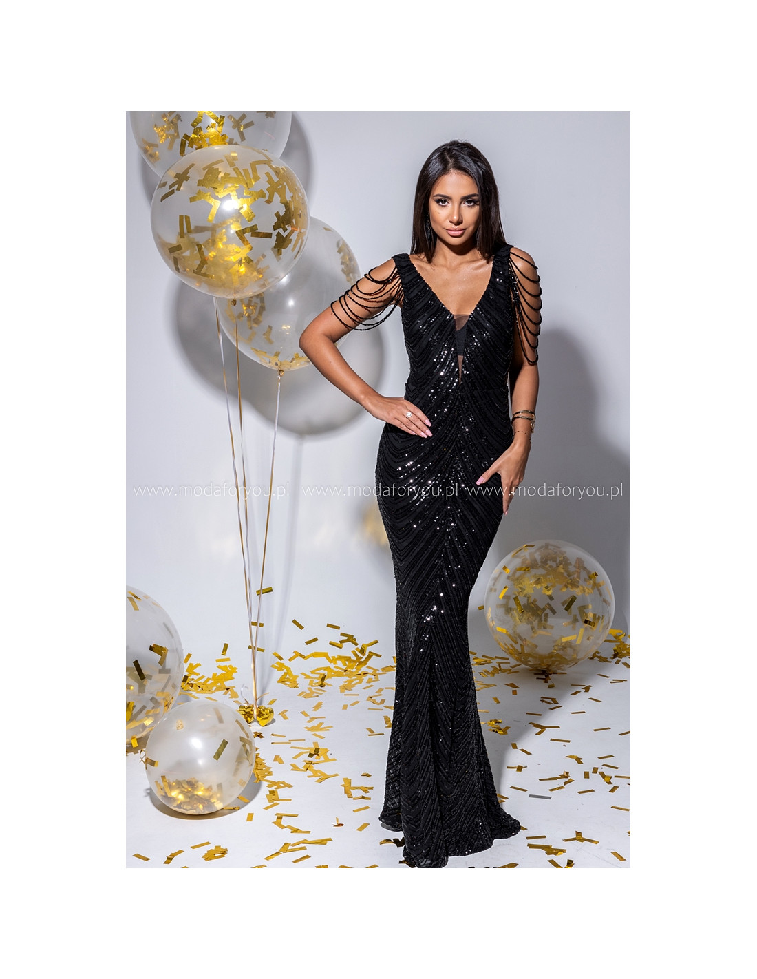 Zjawiskowa sukienka Maxi w całości z cekinów. Na ramionach ozdobne koraliki.