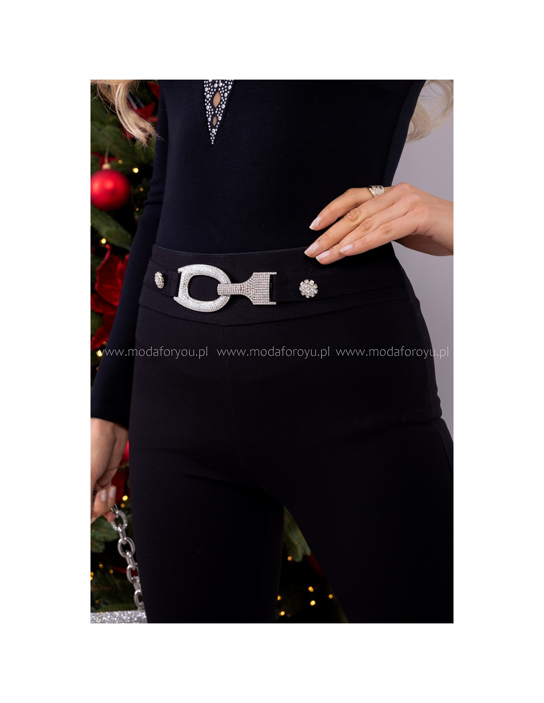 Eleganckie spodnie z piękną klamrą ze srebrnych cyrkonii.