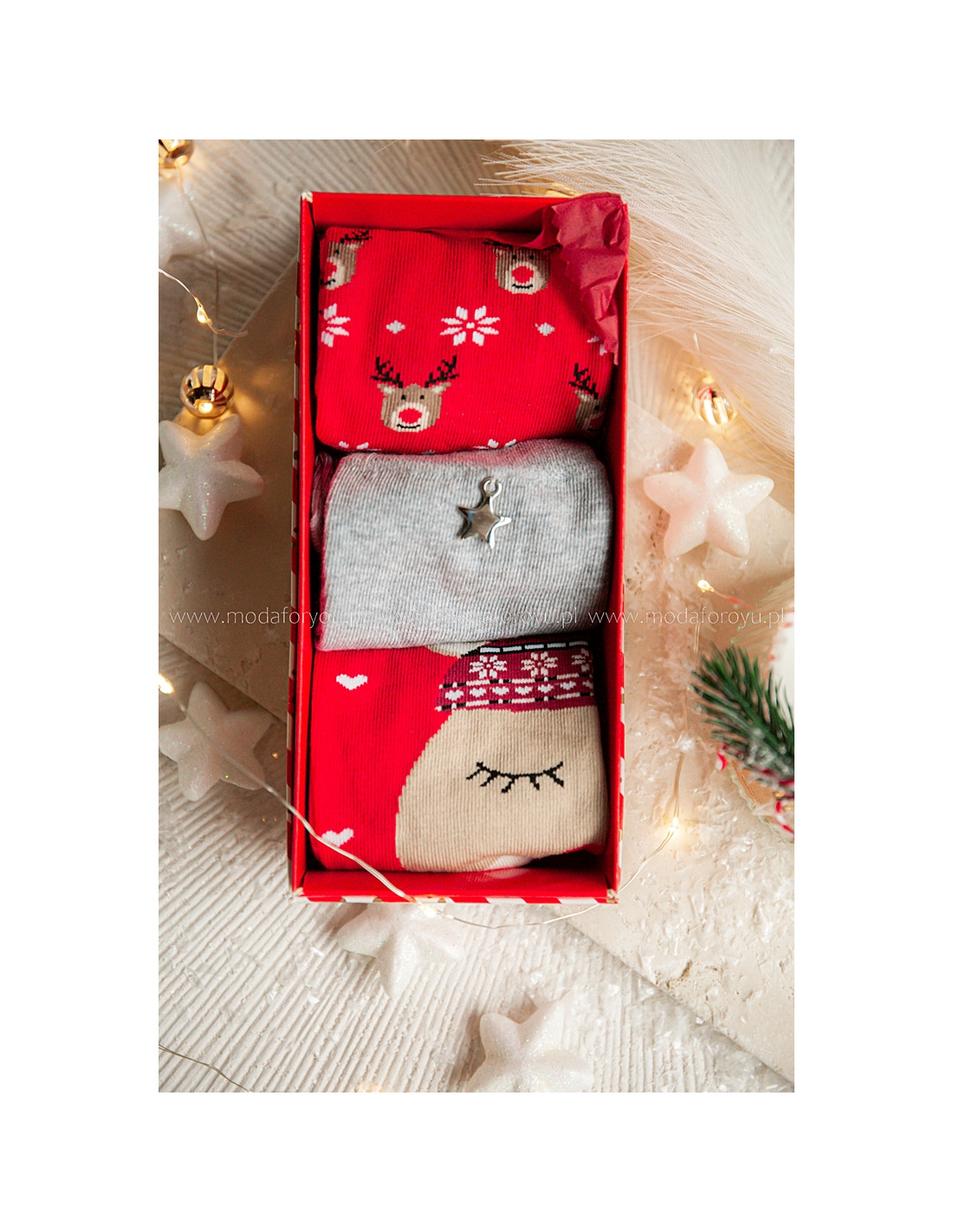 Zestaw świąteczny damski to 3 par skarpetek świątecznych damskich.