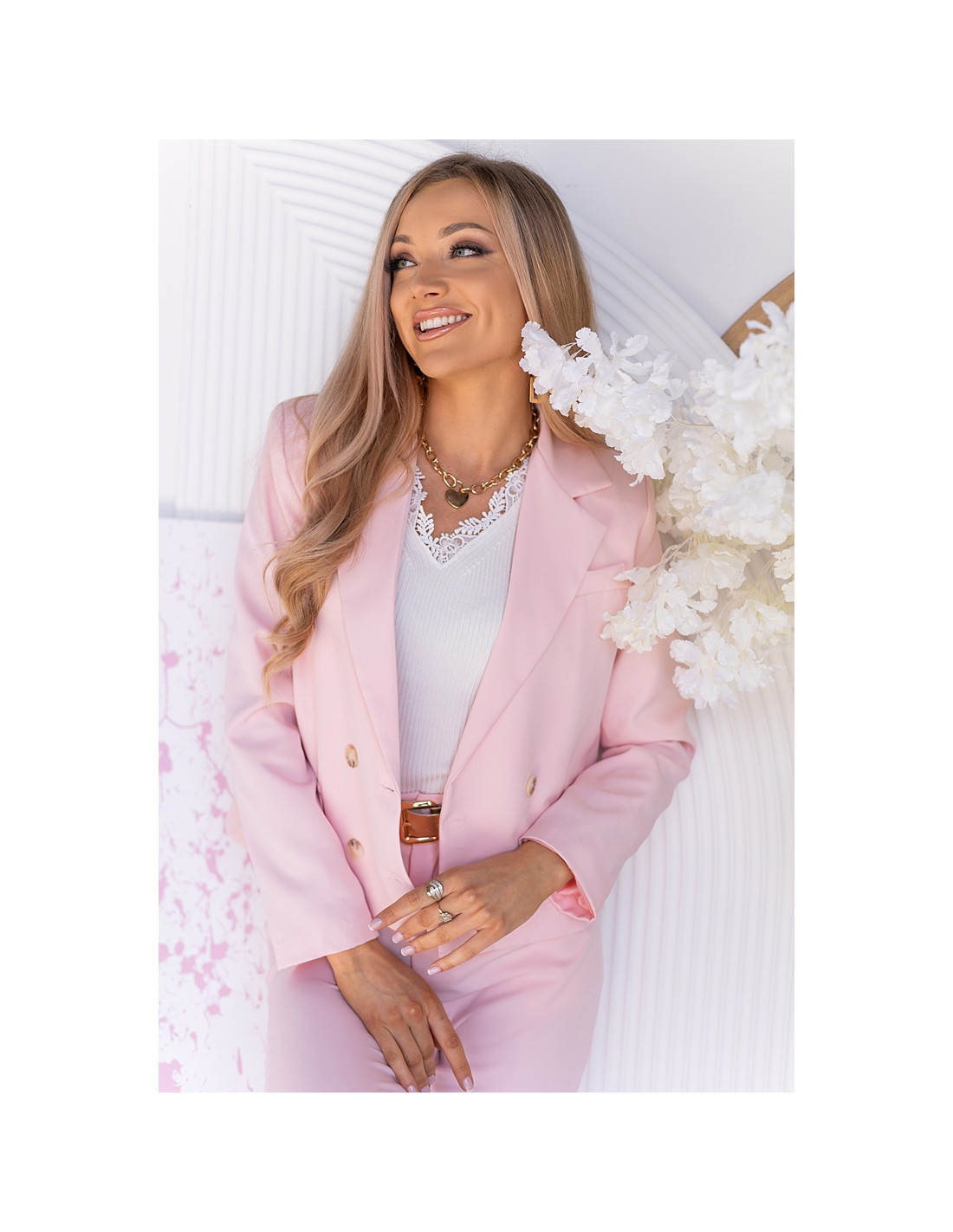 Luźna marynarka zapinana na 2 guziki. Długie rękawki. Posiada podszewkę.
