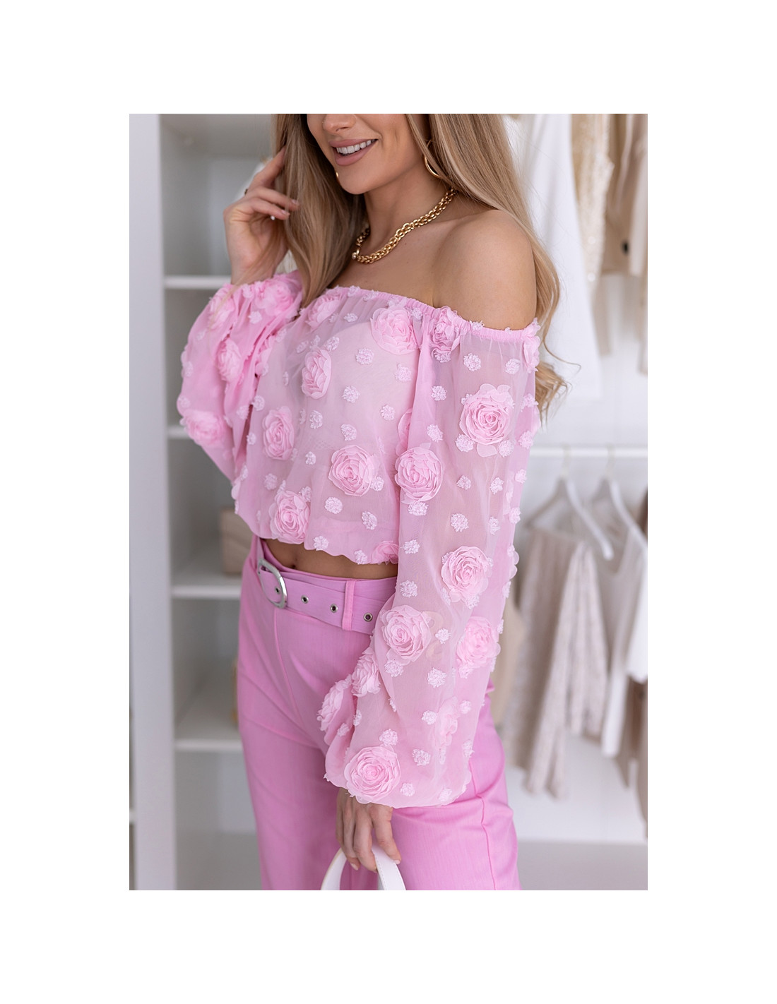 Śliczna bluzeczka typu hiszpanka wyszywana kwiatami. Gumka górą i dołem. Opuszczana na ramiona. Rękawki szerokie, również zakończone gumkami.