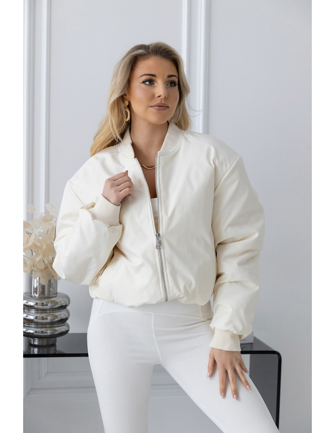 Ortalionowy materiał nadaje całości eleganckiego wyglądu, dzięki czemu bomberka świetnie sprawdzi się zarówno w casualowych, jak i bardziej wyrafinowanych stylizacjach.