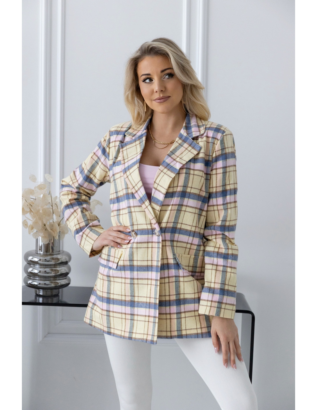 Żakiet w Kratkę Żółty