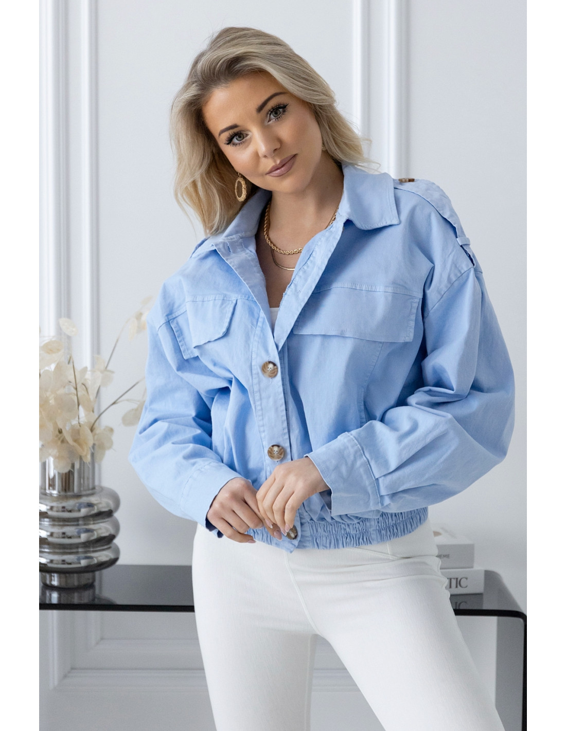 Bawełniana katana z kołnierzykiem, zapinana na suwak z pagonami na ramionach. Długie rękawy z zapięciem na guzik. Dołem ściągacz z gumką.