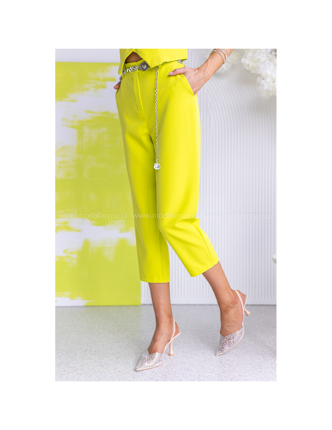 Model z kieszeniami,  spodnie o długości 7/8.