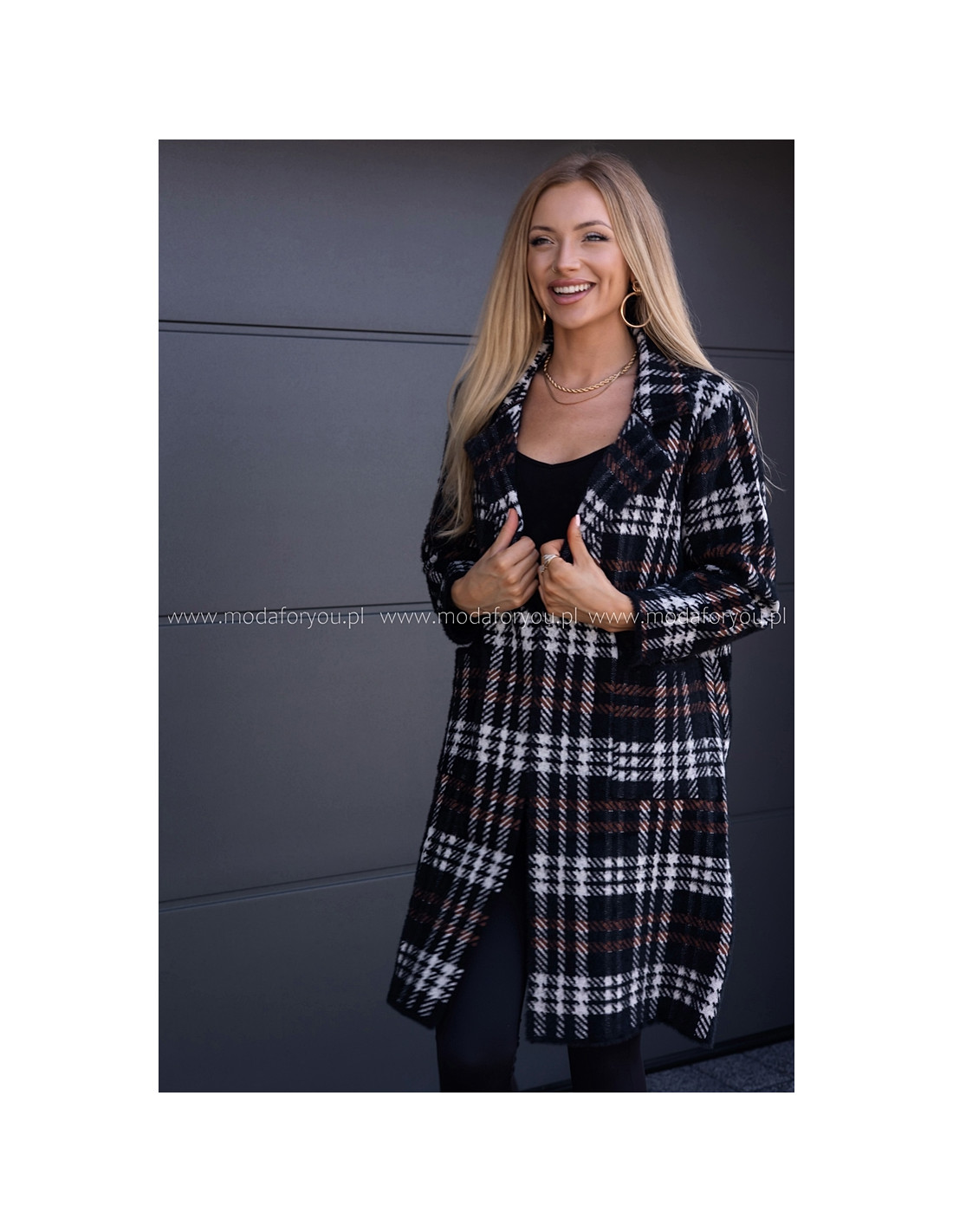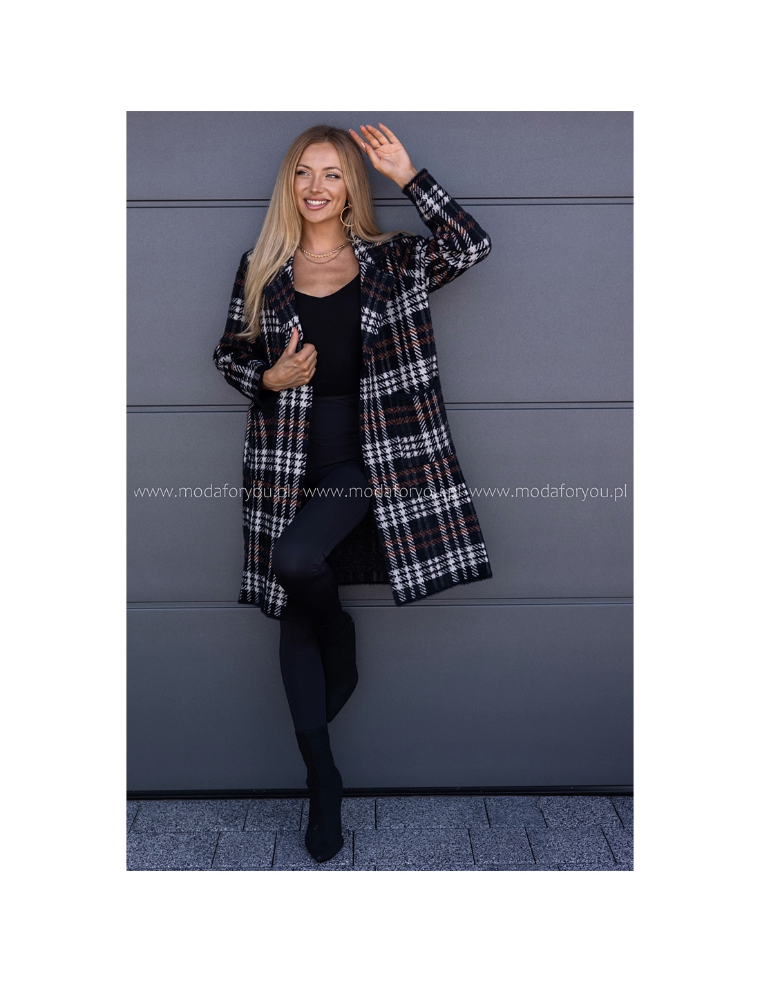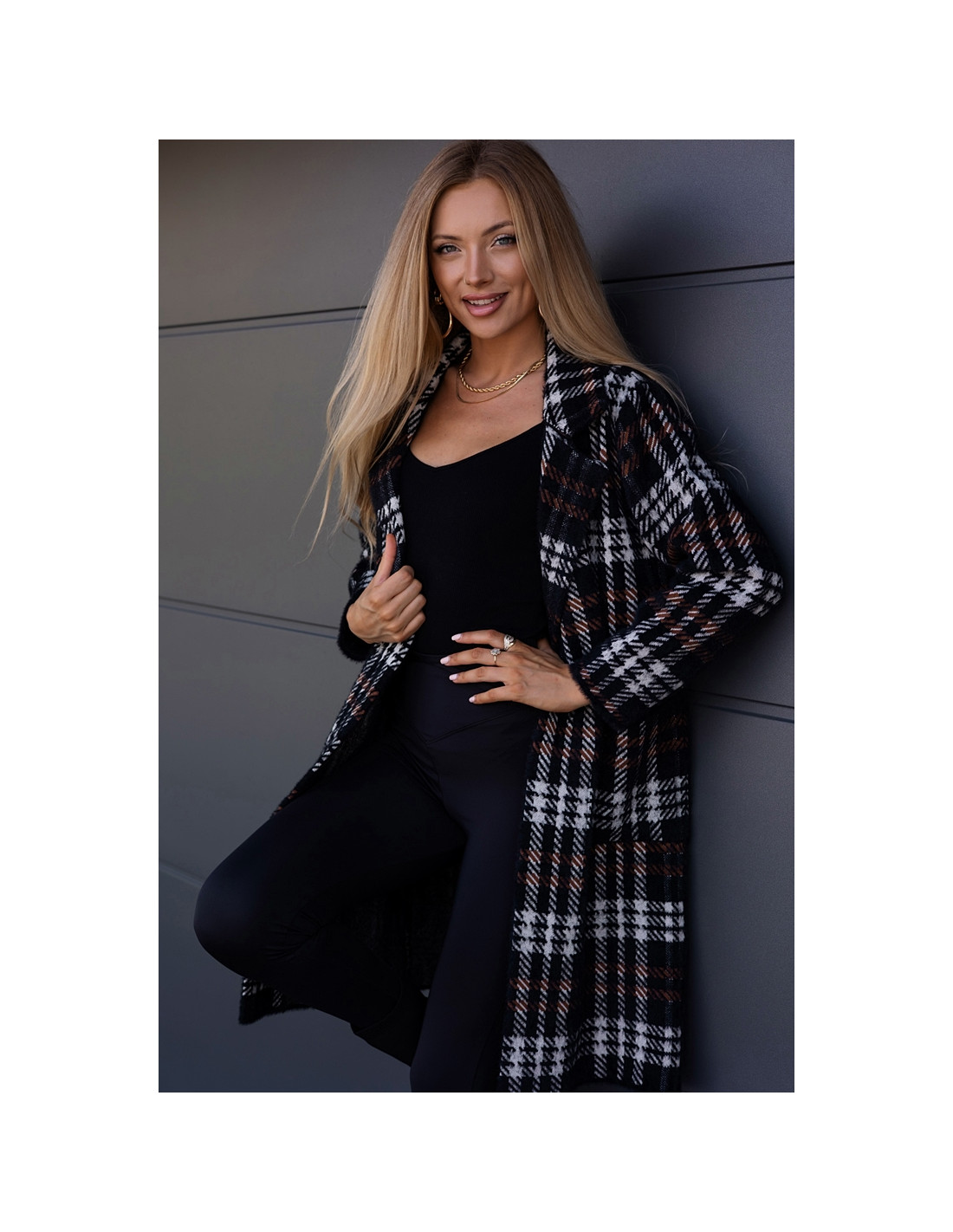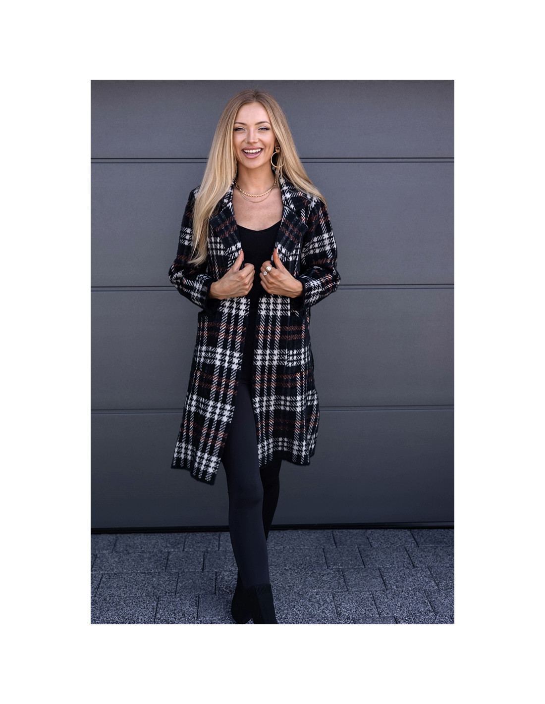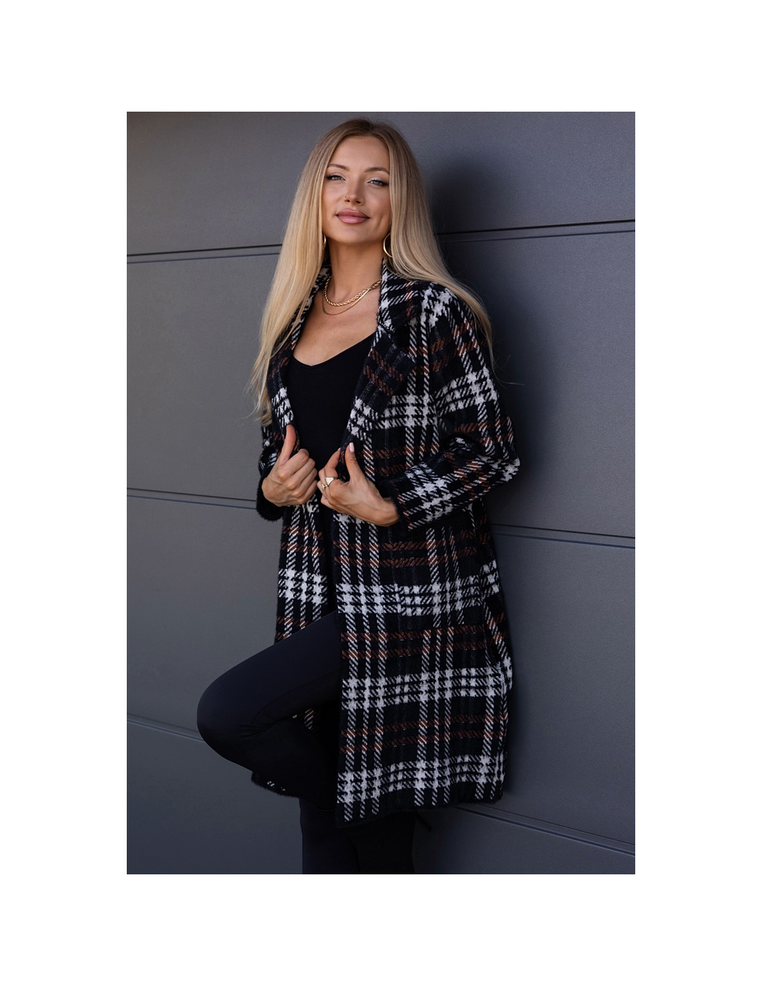 Płaszczyk Alpak w Kratkę Czarny